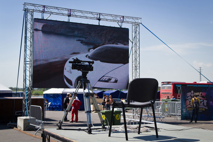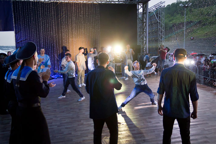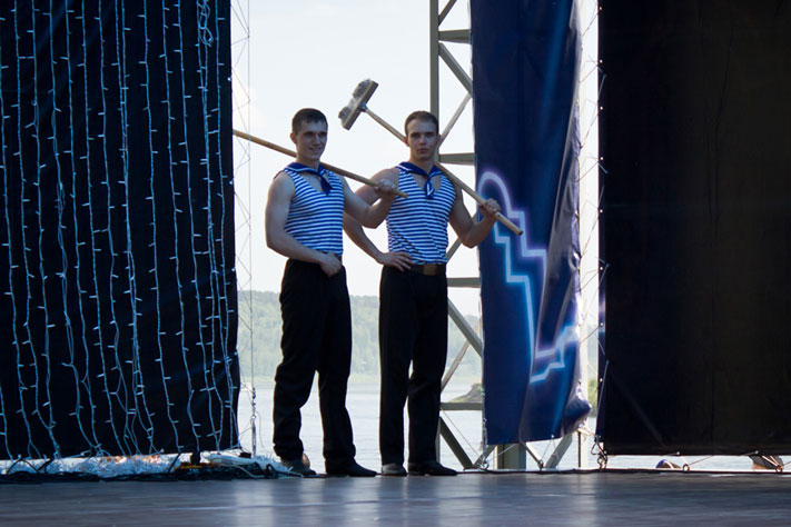 Тридцать киловатт звука, десятки прожекторов, три камеры и один большой экран, чтобы все, что происходит на сцене мог видеть каждый. А еще более 20 человек, охраняющих общественный порядок.