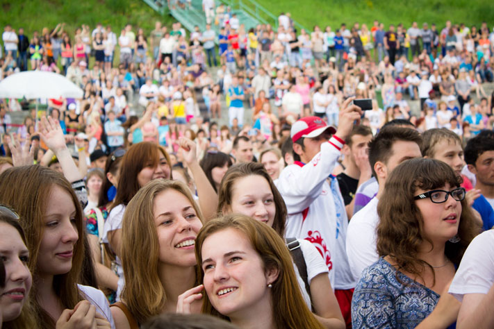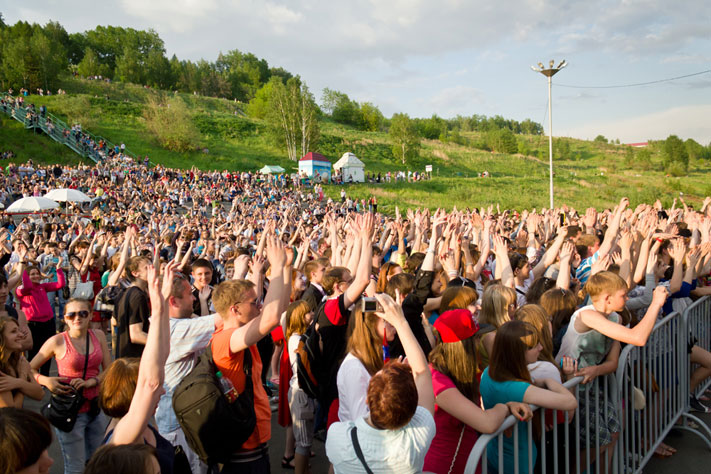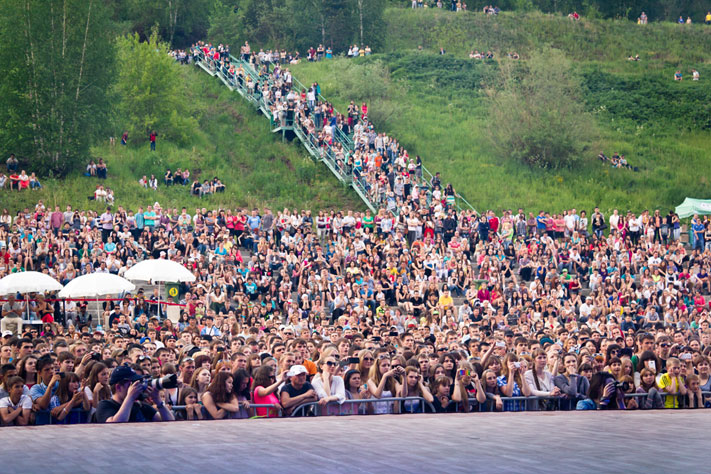 Внезапный дождь днем сильно уменьшил количество публики, но к вечеру площадка перед сценой и длинная спусковая лестница вновь заполнились до отказа.