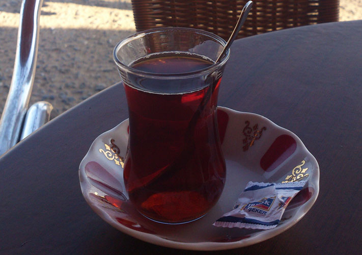 Или разместиться в одном из кафе и заказать невероятно крепкий турецкий чай, который подается в крошечных стеклянных бокалах тюльпанообразной формы (тюльпаны, кстати, являются постоянным элементом турецкого национального узора), на расписном узорчатом блюдце с