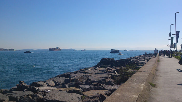 Можно присесть на скамейку в небольшом парке, купить початок кукурузы или донер (среднего размера батон с овощами и маленькими мясными котлетками) и вдыхать бодрящий морской воздух, слушать мальчика, играющего на маленьком аккордеоне, и созерцать нескончаемые пароходики, судна и лодки, круглые сутки снующие то в сторону Черного, то в сторону Мраморного моря.