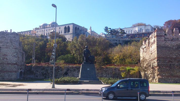 Во время прогулки вам обязательно встретиться крепостная стена — очень древняя и очень длинная. Это стена крепости Йедикиль. Вдоль нее постоянно прогуливаются уличные торговцы с деревянным лотком на колесах, у которых можно купить орехов (например, кулек свежих фисташек стоил 5 лир) и перекусить в Парке мира рядом с крепостью.
