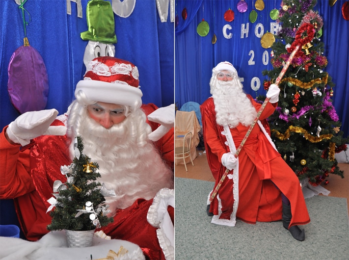 Ирина: Недавно в садике, пока ждали своего выхода, на нас натолкнулись дети, у которых Ёлка уже прошла накануне. «Смотрите! Стопудово, это — настоящий Дед Мороз! Большой! И со Снегурочкой!» Потом подошла воспитательница, рассказала, что в их группе Деда Мороза сыграл старшеклассник, а так как он был невысокий, худой и говорил совсем уж юношеским голосом, то дети остались неудовлетворёнными. Мы поднялись к ним в группу. Дети светились счастьем и на перебой расспрашивали, видели ли мы украшенные ёлки в их домах, найдут ли они там своим подарки? Мы сказали, что постараемся ничего не напутать… Приятно ощущать себя «настоящими»!
