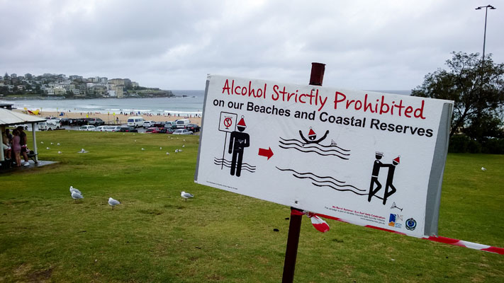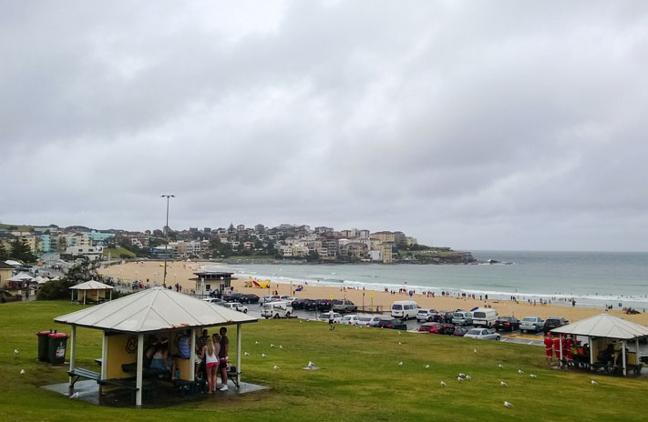 … приготовила в это Рождество Сиднею отвратительную дождливую погоду, отчего многие жители Мельбурна демонически хохотали и пуще прежнего упивались своим редким солнечным деньком. Обычно эти два города сравнивают как два конкурирующих между собой за право считаться нормальной столицей Австралии (никто в здравом уме не признает таковой Канберру, где вынуждены томиться представители федеральной власти). Конкурентным преимуществом Сиднея без сомнения является его томный и приятный климат, тогда как в Мельбурне погода непредсказуемая и изрядно холоднее. Так как Рождество автор застал именно в Сиднее, то он как следует проникся дождём и весельем, участвуя в праздничных гуляниях четырех с половиной калек на прекрасном, в общем то, пляже Бонди.
