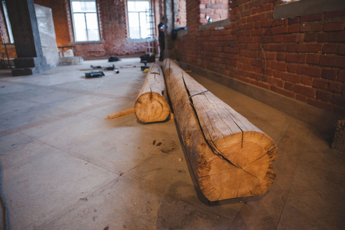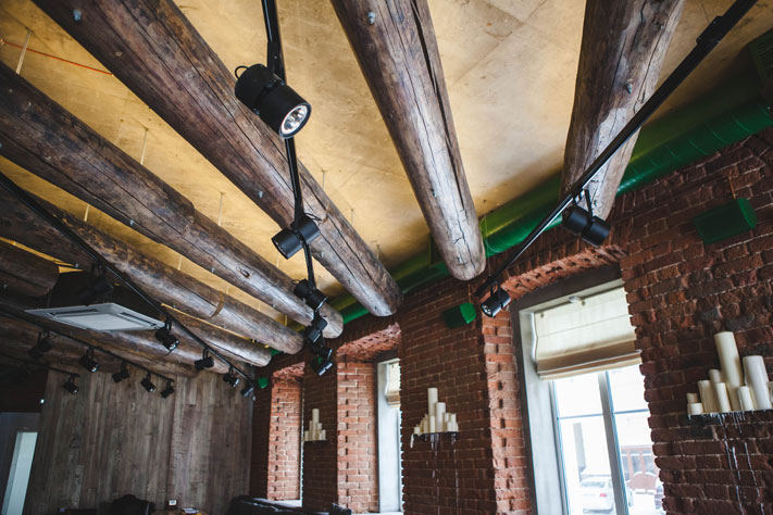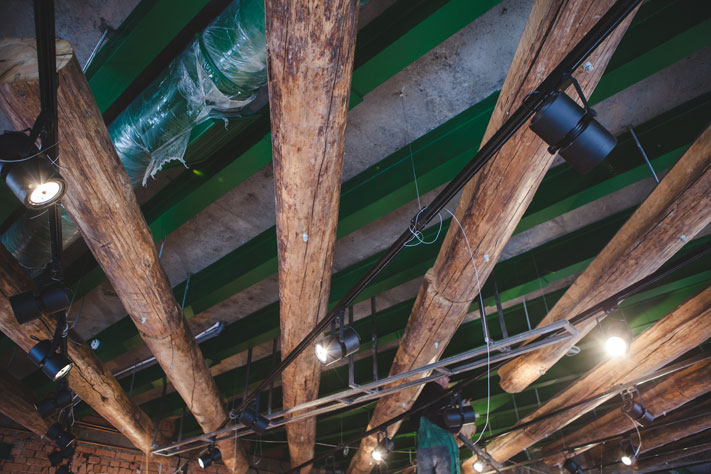 В процессе реставрации, конечно же, обнаружилась масса нюансов. Так, пришлось восстанавливать перемерзшее отопление и фактически менять все трубы на подступах к зданию. В результате, для экономии места здесь решили пойти по нестандартному пути — все помещение обогревается за счет теплого пола, батарей или конвекторов по стенам просто нет. В качестве покрытия на полы уложены бетонные и деревянные панели. Сложные бетонные плиты пришлось сначала долго искать, а потом заказывать за границей и долго ждать. Зато в результате натуральное покрытие получилось не скользким и эффектным.