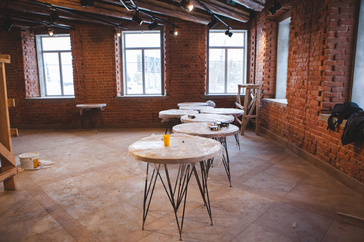 Правда, перед началом работ арендаторам пришлось провести «большую уборку» и ликвидировать следы пребывания прежних обитателей. А летом прошлого года началась реставрация: