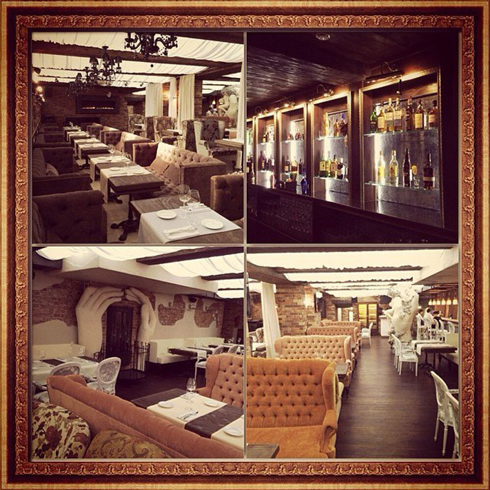 Хорошо обыграли классические темы. Фасад заведения не очень выделяется, вывеска напоминает советскую наружную рекламу и не отражает интерьера, скорее создается ощущение, что тут суши бар. Но внутри очень хорошо. Сразу подкупает качество отделки — идеальные потолки, стены, пол — видно, что был хороший авторский надзор. Перед дизайнерами была задача сделать качественный ресторан с демократичными ценами, и им это удалось. Ничего не раздражает. Даже телевизор над камином, а это обычно режет глаз. Хорошая комфортная обстановка и еда, наверное, тоже вкусная.