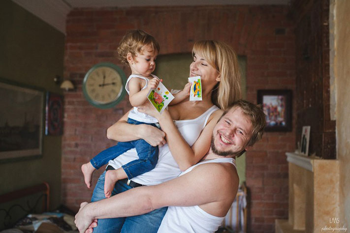 — У нас есть одна семья, которую мы просто встретили в магазине: белокурая девочка с огромными глазищами, молодые красивые мама и папа. Мы подошли, отдали им свою визитку, договорились. И просто их поснимали для себя. Выяснилось, что они живут в потрясающем доме, которому лет сто уже, по профессии дизайнеры и в целом очень интересные люди. Мы их нашли, и они остались с нами. Сейчас, год спустя, хотят еще раз сфотографироваться, — рассказывает Рома.