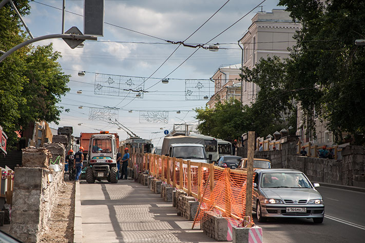 В Томске полным ходом идет реконструкция подпорной стенки на проспекте Ленина — на участке от улицы Беленца до Главпочтамта. В связи с этим одна из полос дороги частично закрыта для движения.