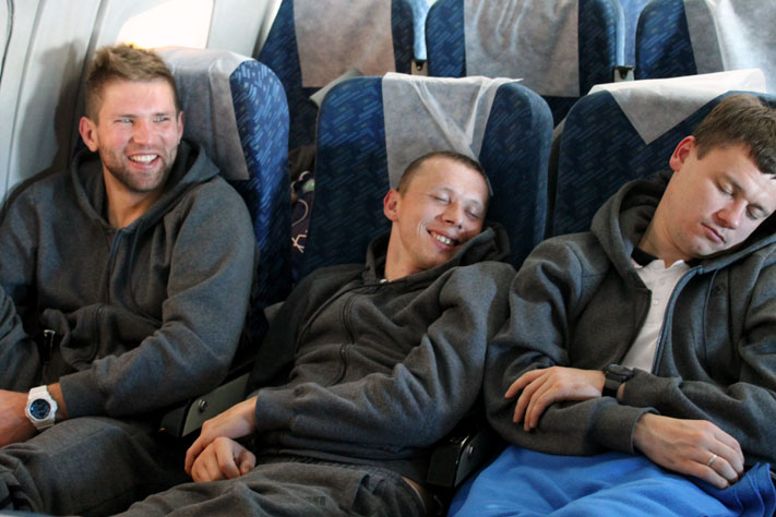 — Надо правильно питаться, пить много воды, а еще психологически настроиться, — уверен Валерий Непомнящий. — Если обычные пассажиры могут немного выпить, расслабиться и спокойно лететь, то у спортсменов ситуация другая. Игрокам перед матчем нельзя употреблять алкоголь. У нас принято перед полетом пить аспирин. Кровь меняет свою структуру во время полета, сосуды сжимаются, для организма это тяжело, а аспирин кровь разжижает. Считается, что два часа в самолете равны двухчасовой тренировке — по затратам энергии, потерям влаги.