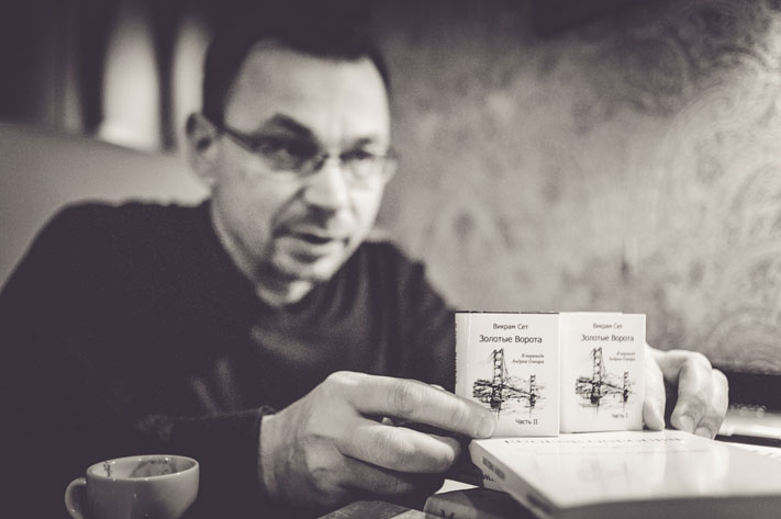 Мы публично говорили с Флорианом и о его переводе «Евгения Онегина» на французский, и о том, что о моей последней работе, которую я представлял в рамках лекции. Речь идет о романе «Золотые ворота», написанном английским поэтом индийского происхождения Викрамом Сетом онегинской строфой! Причем этом