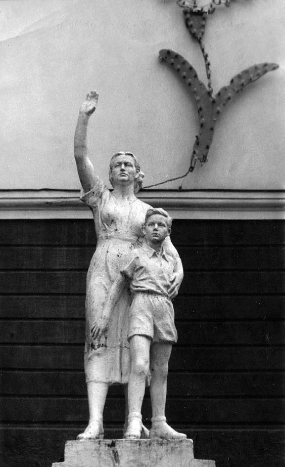 Это типовые гипсовые скульптуры в стиле соцреализма, которые в советское время традиционно и массово ставили на входе
