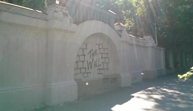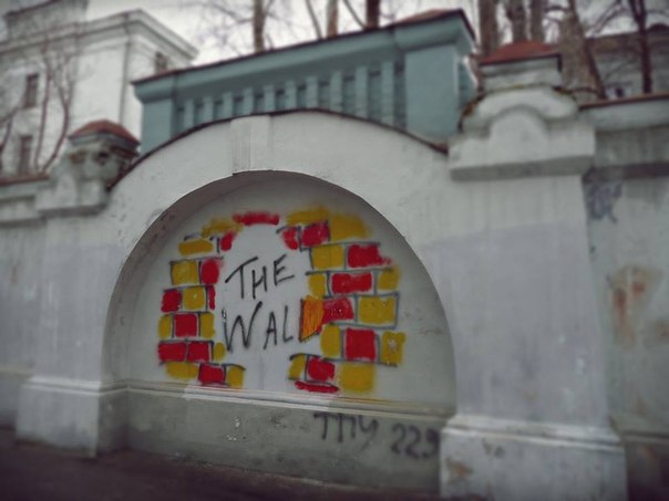 Но самой главной и старой настенной надписью Томска приблизительно с 1979-го года является знаменитая The Wall, регулярно появляющаяся на одной из стен Политехнического университета и так же регулярно стираемая и закрашиваемая:
