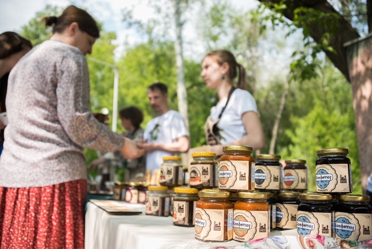 На территории Университетской рощи расположилось сразу несколько площадок. В «Ремесленной слободе» были представлены предметы народного промысла, изготовленные талантливыми мастерами, – деревянная и глиняная утварь, кованые изделия, украшения из бисера и камней, одежда сибиряков, созданная современными мастерами, и многое другое. На «Трактирной площади» можно было подкрепиться медовыми пряниками, вареньем из сосновых шишек или одуванчиков, хлебом и настоящим квасом из хлеба или ягод.