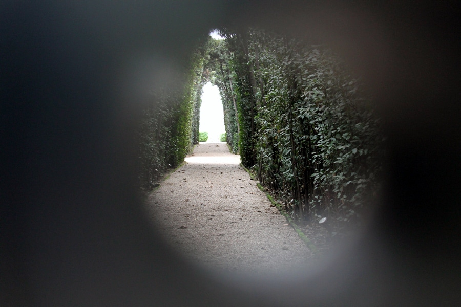 Неподалеку от апельсиновых садов — площадь Мальтийских рыцарей. Туда идут ради двери виллы дей Кавалерии (Villa dei Cavalieri). Речь идет о том случае, когда подглядывать в замочную скважину не только можно, но и нужно! Она не зря такая массивная, и возле нее часто собираются целые очереди. Если заглянуть туда, вы увидите не только красивую аллею из вечнозеленых деревьев, но и сразу три государства: Италию, Ватикан и Мальтийский орден.