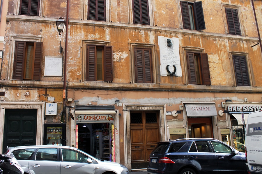 «Если бы вы знали, с какой радостью я бросил Швейцарию и полетел бы в мою душеньку, в мою красавицу Италию. Она моя! Никто в мире её не отнимет у меня! Я родился здесь. Россия, Петербург, снега, подлецы, департамент, кафедра, театр — всё мне снилось!». Так восторженно и пылко писал Николай Гоголь осенью 1937 гола Василию Жуковскому. Классик часто путешествовал, но заявлял, что «Европа в сравнении с Италией всё равно, что день пасмурный в сравнении с днём солнечным» и признавался: «Европа для того, чтобы смотреть, а Италия для того, чтобы жить». Особенно полюбил писатель Рим. Именно там он жил 9 лет, с 1837 по 1846 год, в России бывая только изредка. Дом, где Николай Васильевич обычно снимал квартиру, сохранился: на Via Sistina, 2 он прожил с
