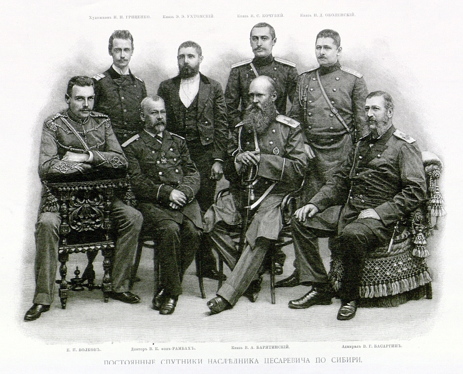 В свиту морской офицер попал во время путешествия наследника-цесаревича Николая Александровича (будущего императора Николая II) на Восток в 1890-1891 годах - и как моряк (на фрегате «Память Азова»), и как художник. Военные корабли доставили морским путем наследника и группу сопровождения из Европы в Японию. Обратный путь в Петербург пролегал по городам Сибири. В Томск цесаревич прибыл 5 (17) июля 1891 года: