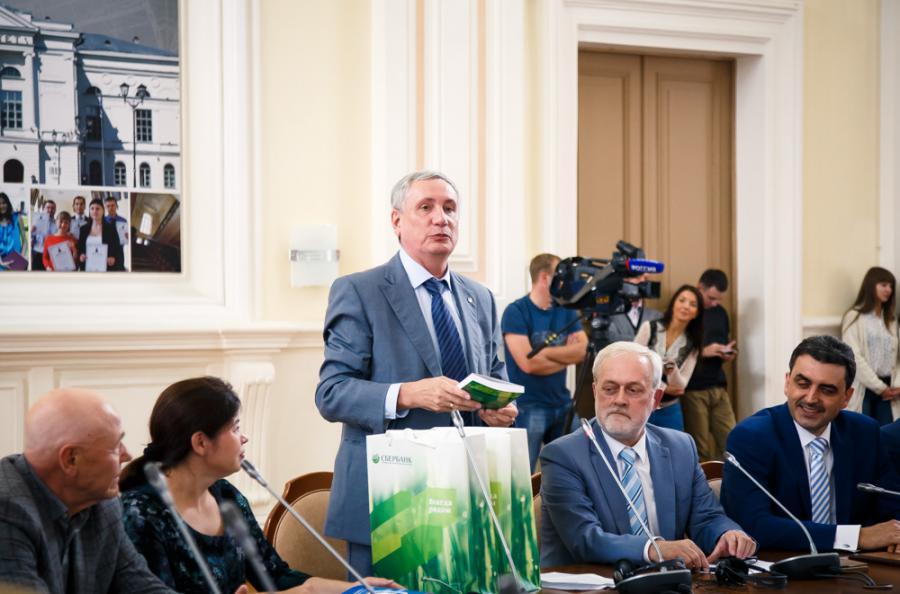 Открыл встречу ректор университета Эдуард Галажинский. Сегодня он лично курирует несколько ключевых направлений в ТГУ. Институт экономики и менеджмента - один из таких проектов-драйверов.