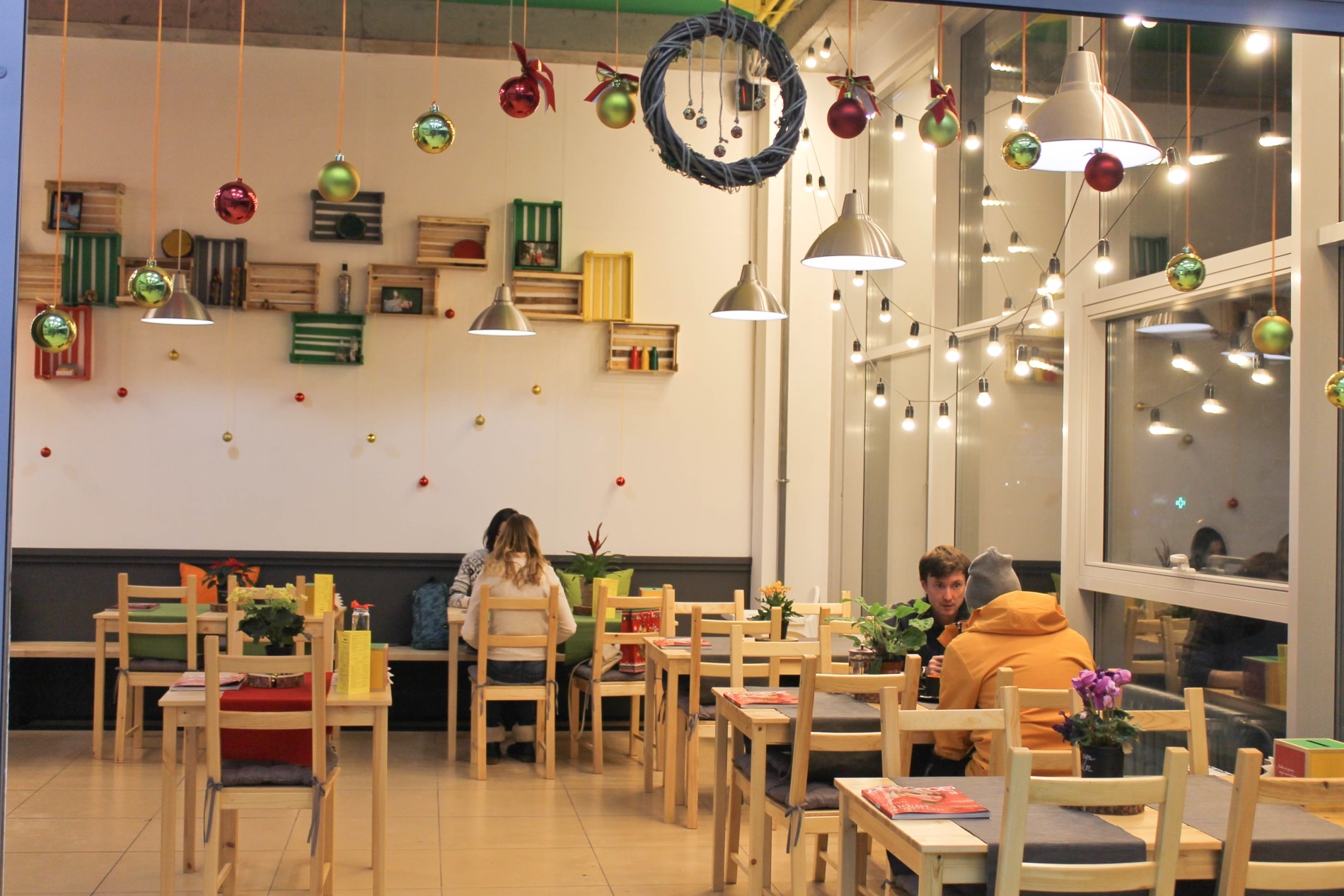 Через свою стеклянную стену кафе выглядело очень уютно, солнечно, и мы поспешили туда на ужин.