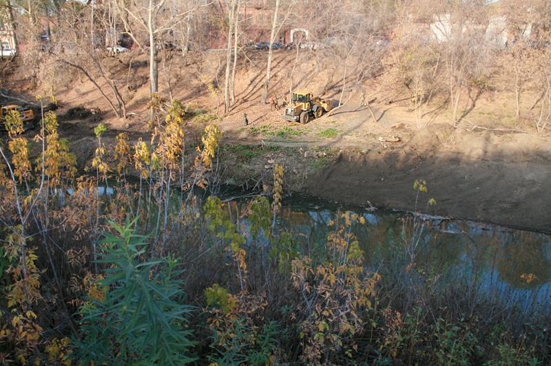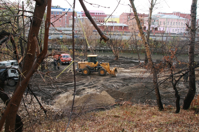 Реконструкция берега реки Ушайка возле Каменного моста