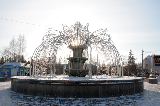 Фонтан «Зима» работает по ул.Шевченко, 62а. Он выполнен в виде полукруга диаметром 12 метров и высотой 7 метров.
