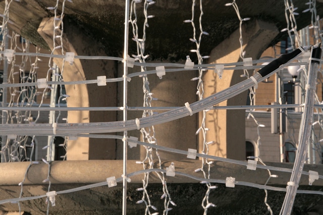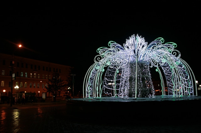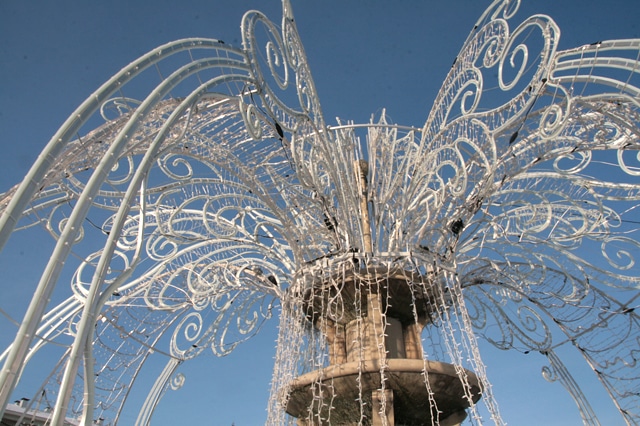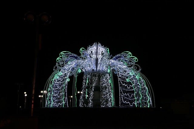 Как сообщили в ООО «Горсети», перед магазином «Томские товары» установлена самая большая световая конструкция - фонтан «Хрустальный» шириной 10 метров, длиной 18 метров и высотой 5 метров.