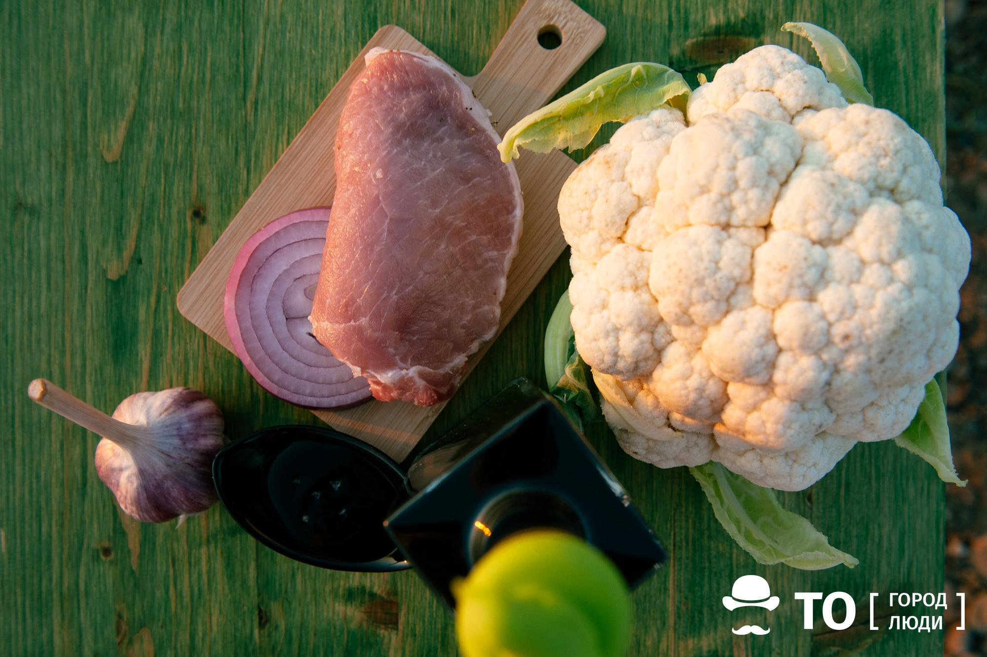 С чем есть: с печеными на решетке яблоками и цветной капустой, зеленым салатом.
