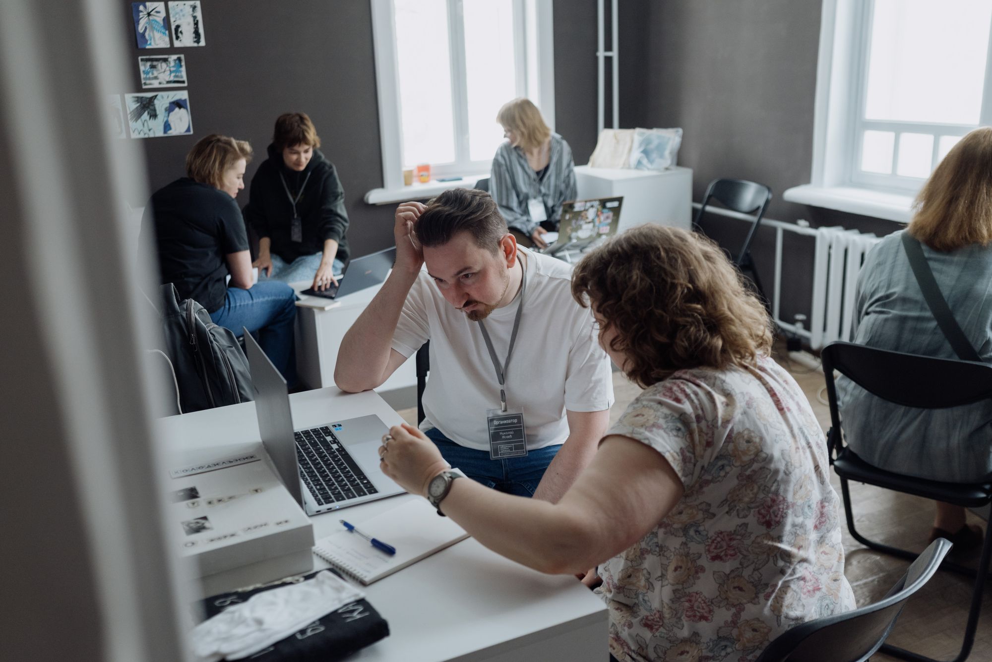 Портфолио ревю — возможность для автора встретиться со зрителем и задать ему вопросы. Экспертность собеседника отходит на второй план, лишь помогая ему лучше воспринять увиденное и выдать художнику обратную связь. Диалог происходит в формате «человек-человек». Это одновременно плюс и минус, по опыту знаю: иногда это подсвечивание тонких мест, иногда откровенное хамство (к счастью, нам с экспертами повезло). Это важный опыт для обнаружения новых интерпретаций, тем для проектов и приятных знакомств внутри индустрии. Горячо рекомендую как для совсем молодых авторов, так и матерых представителей профессии.