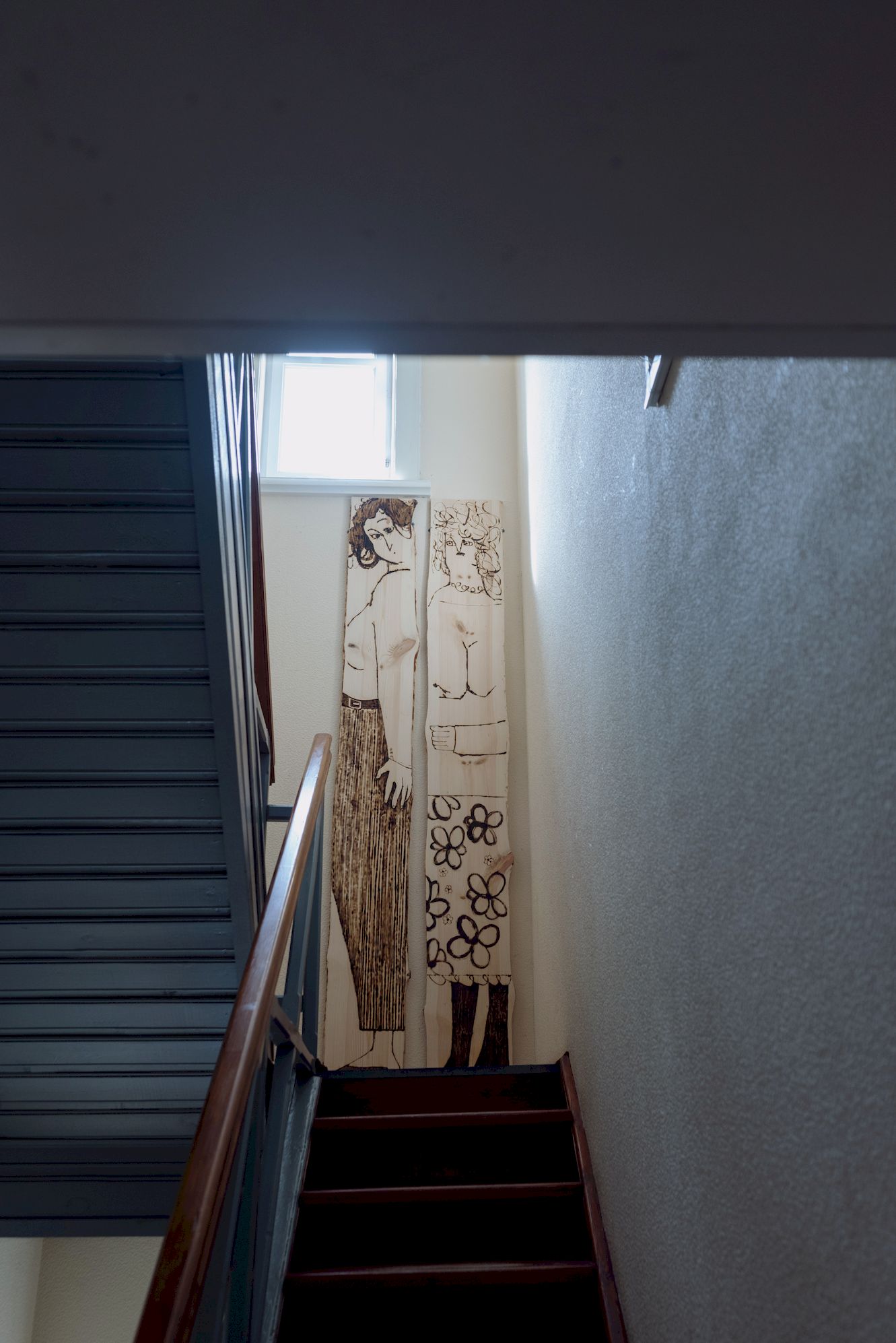 Если говорить о процессе подготовки, то от задумки до реализации идеи трансформировались. Было базовое понимание, что ляжет в основу проекта, но форма менялась. Проект о женщинах сложился, когда я увидела узкую нишу в одной из комнат на втором этаже во время обзорной экскурсии по дому. Я поняла, что она послужит прекрасным союзником идеи незаметности, экспонирование работ в такой нише будет хорошо работать на замысел и раскрывать его с новой силой. Другой проект тоже претерпел изменения в процессе обсуждения и реализации, ведь даже само выставочное пространство задает правила и вносит свои коррективы. Как и другие условия: количество участников, бюджет, возможности типографий и др. Это нормально.