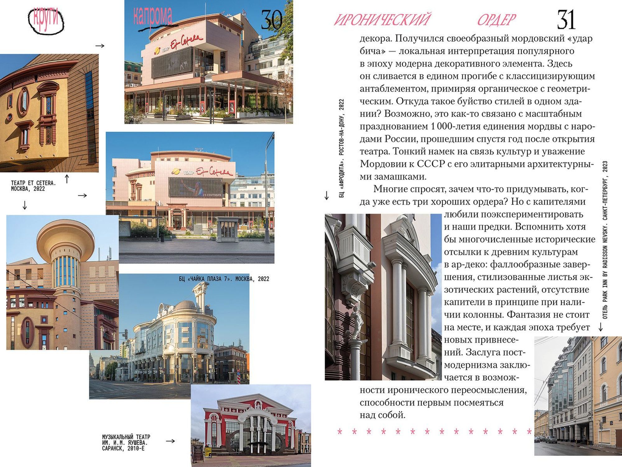 Первое из них — разобществление. Оно появилось в противовес советской архитектуре обобществления, когда возводились дома-коммуны, фабрики-кухни, общественные бани и все было направлено на коллективное потребление и взаимодействие. Капитализм ставит во главу угла индивидуализм — он и оказался главной движущей силой в новой архитектуре. Страну захватило стилевое разнообразие и разобществление быта, традиций и культуры.