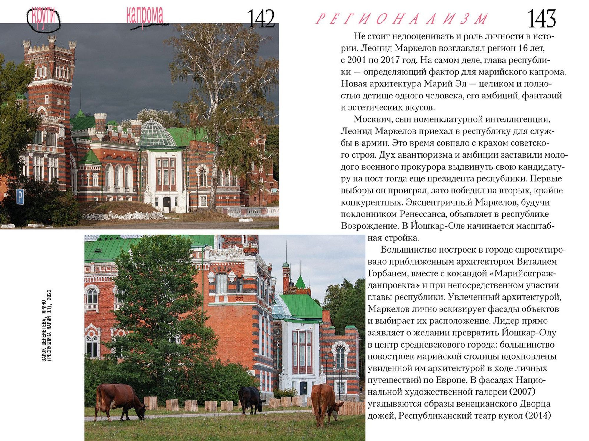 — Мы будем бороться за то, чтобы этой набережной в Йошкар-Оле присудили статус всемирного наследия ЮНЕСКО, потому что такого примера больше нет нигде. Это что-то вдруг внезапно появившееся посреди марийских земель из Северного Возрождения, буквально за 7-10 лет. И, конечно, сначала в Йошкар-Оле относились к этому остро и негативно. Тогда люди с хорошим вкусом говорили, что «мы теряем наш настоящий город». Теперь же эта набережная Брюгге на всех магнитиках, во всех каталогах, туда реально приезжают туристы, потому что такое нигде больше не встречается.
