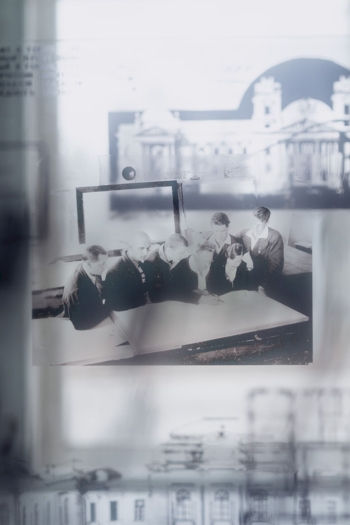 Проект исследует взаимосвязь архитектуры, образовательной среды и человеческих отношений сквозь призму конструктивизма. Он состоит из двух частей: первая раскрывает инженерный подход архитектора Андрея Дмитриевича Крячкова и предлагает взглянуть сквозь стены на студенческую жизнь в построенном им здании Технологического института; вторая сосредоточена на его педагогической роли и конфликте со студентом, а впоследствии коллегой — Николаем Кузьминым. Это столкновение становится поводом для размышлений о конструктивизме как архитектурной и смысловой системе. Архивные фотографии и документы, напечатанные на оргстекле, складываются в многослойную прозрачную конструкцию и формируют пространство сопряжения — взаимодействия между поколениями, взглядами и временем. Проект подчёркивает значимость внутренних процессов, происходящих не только в архитектуре и образовании, но и в отношениях между людьми.