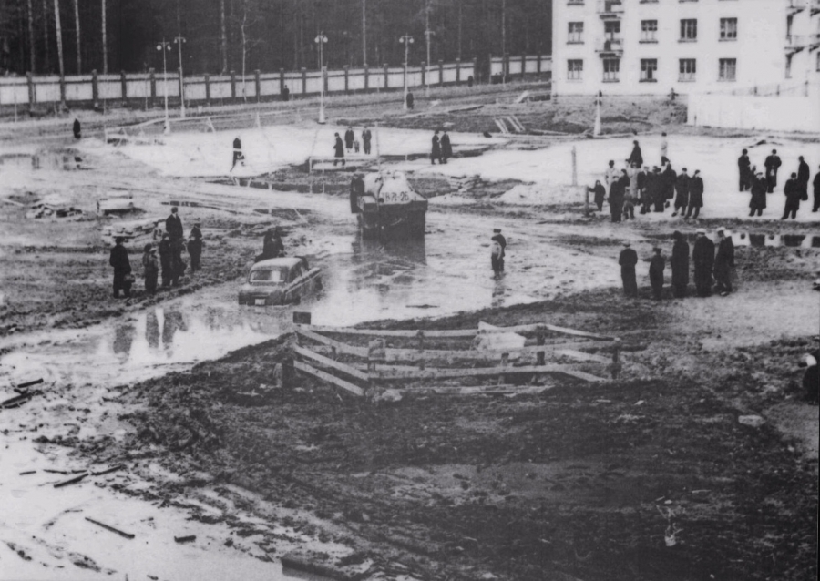 3. Благоустройство не всегда поспевало за работами: приходилось не только решать вопрос со строительством производства и жилья, но и бороться с грязью в городе-стройплощадке