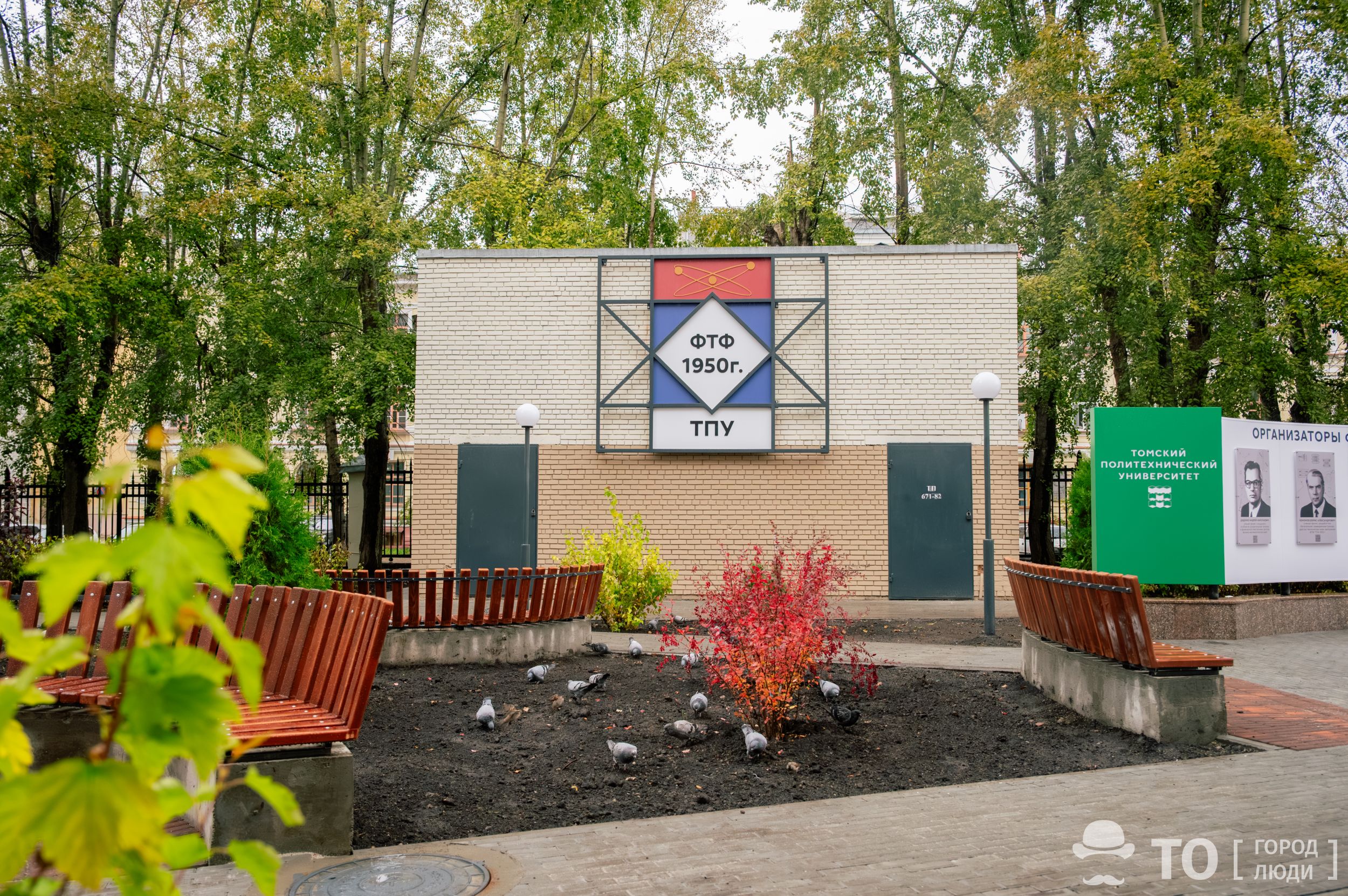 Сквер располагается рядом с корпусом ТПУ на углу пр. Ленина и ул. Савиных. Общая площадь пространства — 1 700 квадратных метров. Здесь провели комплексное благоустройство: организовали пешеходные дорожки из брусчатки, установили новые скамейки, провели озеленение, обновили освещение, установили исторический логотип факультета. Во время сохранили исторические детали — ворота и забор вокруг территории, установленные в годы строительства корпуса. По одной из легенд, они были перевезены в Томск из МГУ.