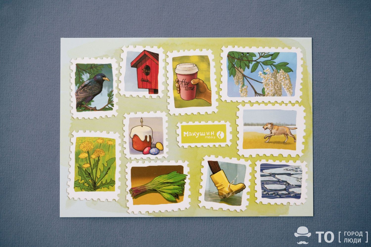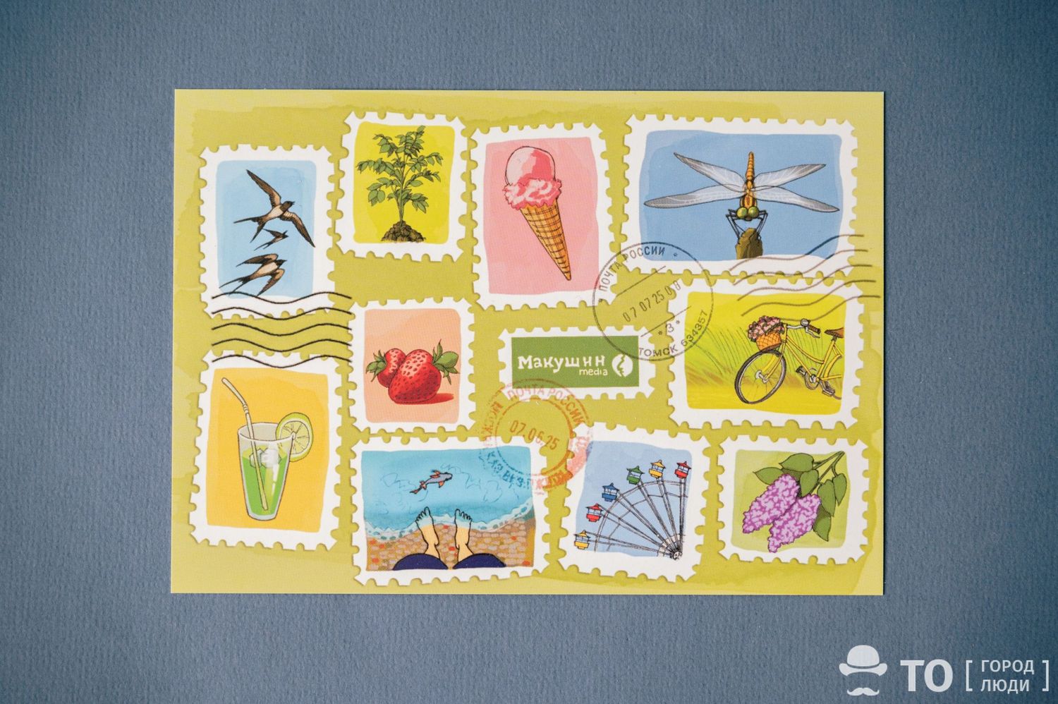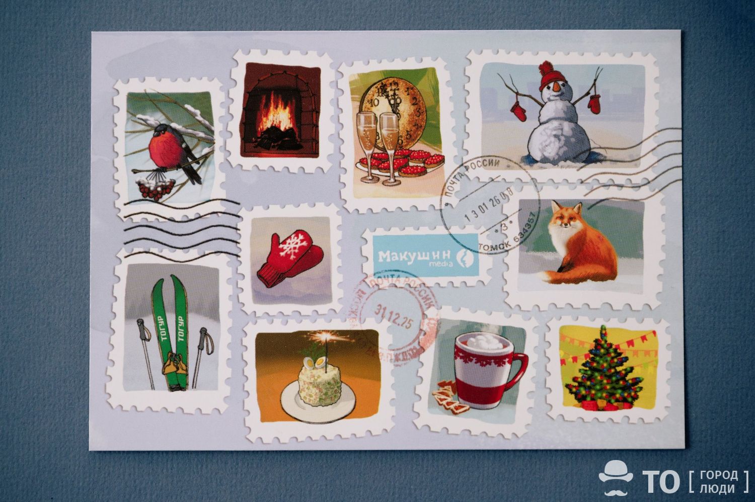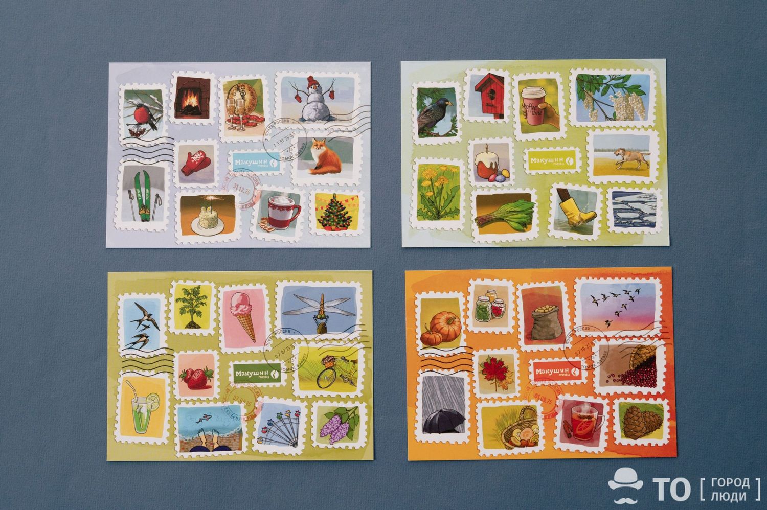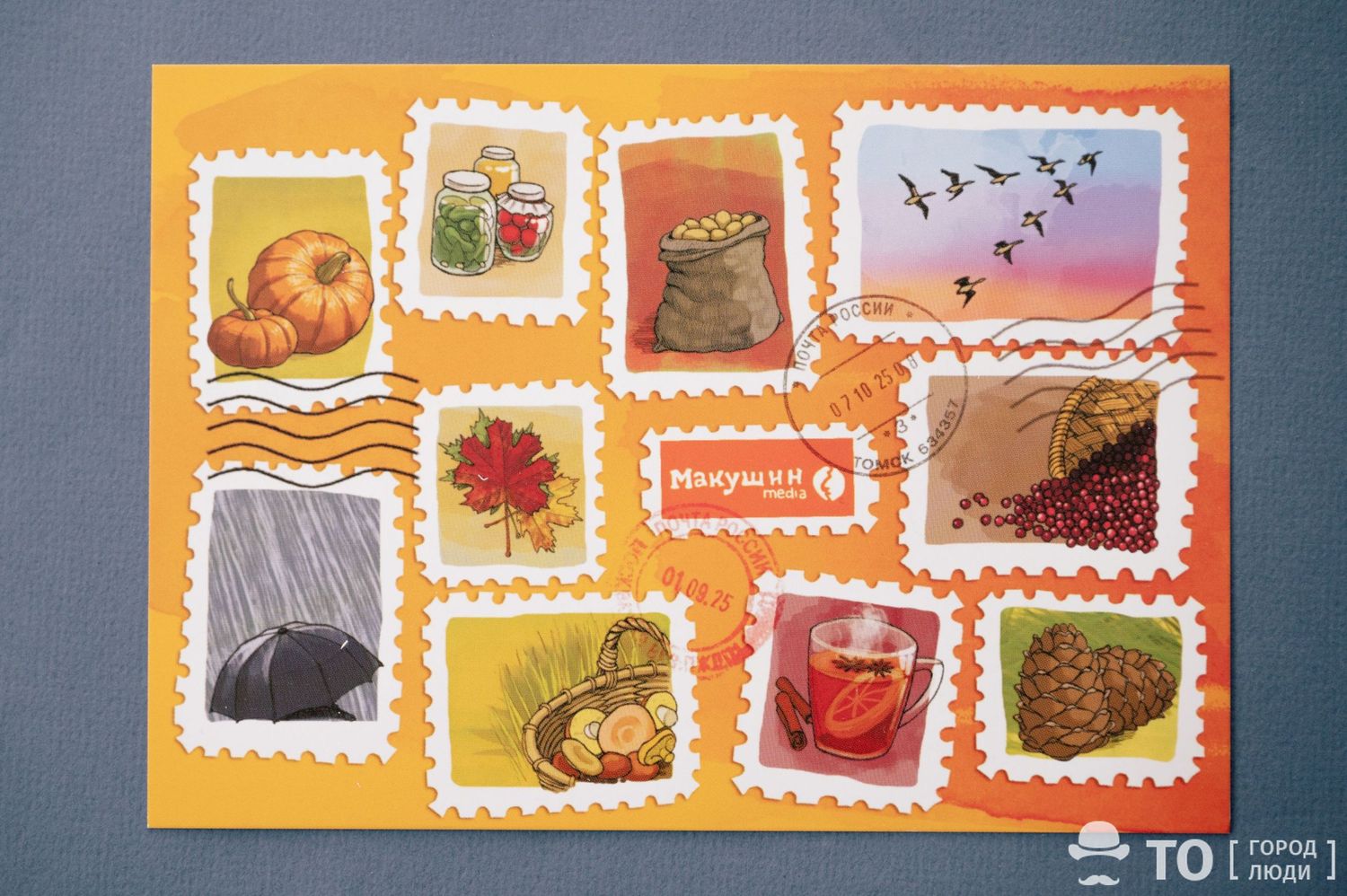 — Идея открыток с почтовыми марками была очень тепло принята в прошлом году, когда мы совместно с «Почтой России» выпустили открытку для фестиваля искусства и чтения «ТОМ II». Поэтому мы развили тему и подготовили новый набор, собрав в нем главные сезонные сибирские приметы. Тут и катание на лыжах (кстати, «Тогур» — это марка, выпускавшаяся в Томске) и новогодний оливье, весеннее цветение черемухи и пасхальный кулич, холодный лимонад и первая июньская клубника, прогулки под зонтом и грибная корзина, которую хочется наполнить осенью, — рассказывает продюсер издательства Василина Фаткулина.