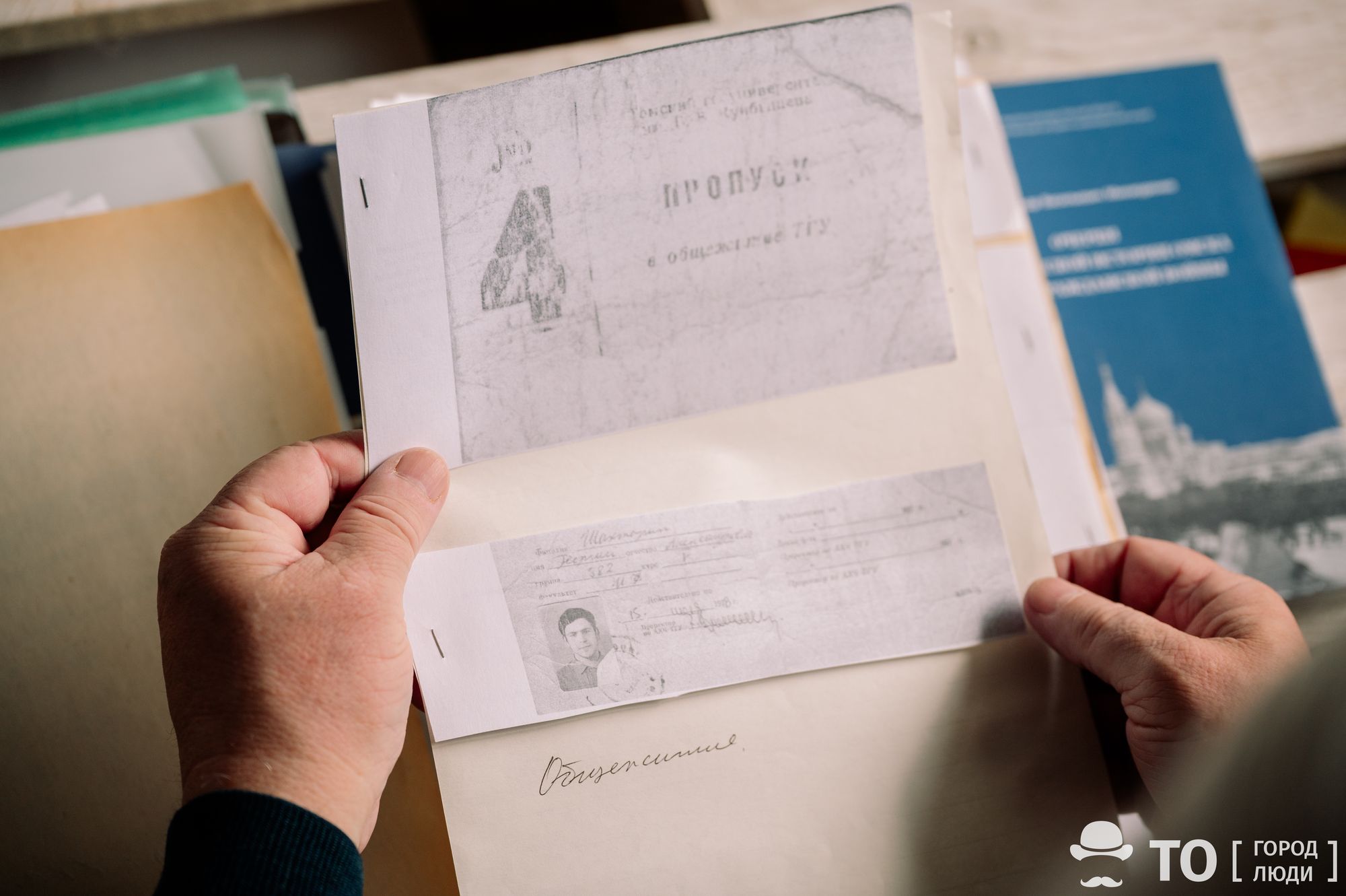 Истории о встречах со знаменитостями тоже попали в «Записки экскурсовода». А среди тех памятных предметов, что ждут второго издания, есть копия пропуска студента Георгия Шахтарина в общежитие №4 по адресу пр. Ленина, 49 или часть фотографий с пожара в декабре 1968 года в главном корпусе вуза.
