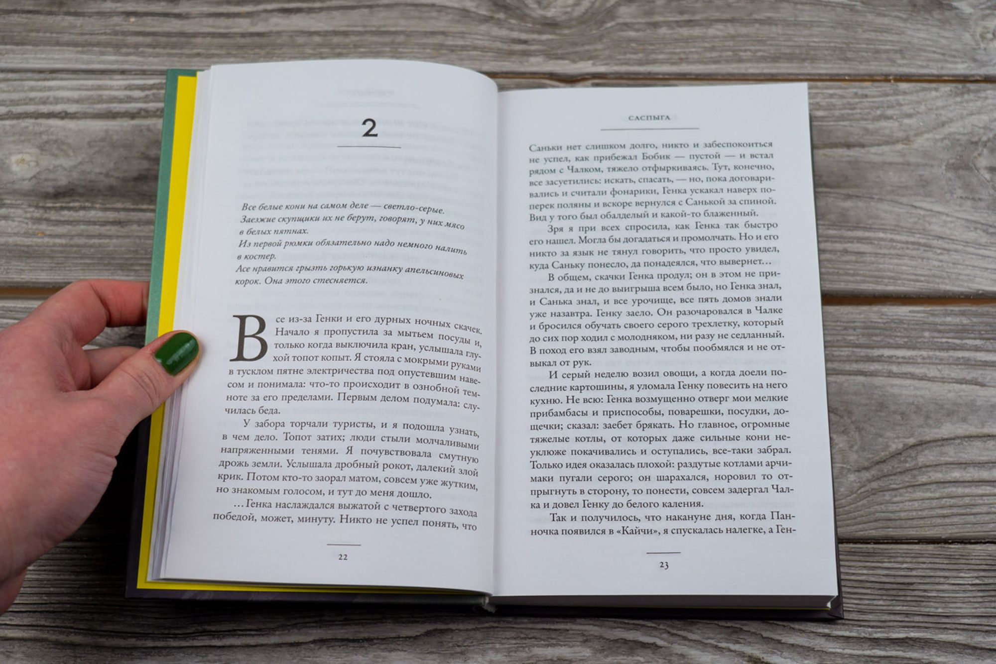 — Для меня пространство — это отдельный персонаж. Более того, оно часто становится точкой, из которой придумывается текст. Я сначала вижу пространство, а уже потом вокруг него наворачиваю историю. «Саспыга» не могла случиться нигде, кроме как в горах Алтая. В других горах была бы какая-то другая история. Да, пространство очень важно.