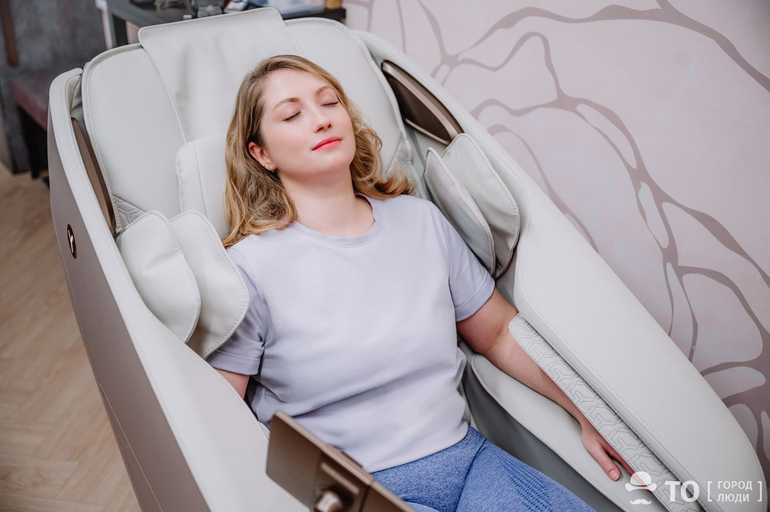 Собственно, оно стало еще одной причиной открытия зала. Когда Анна Николаева впервые протестировала оборудование Yamaguchi на себе, ей стало понятно — это действительно полезный девайс. Но в лобби с постоянной проходимостью, куда обычно ставят кресло в отелях, салонах или других общественных пространствах, расслабляться на нем некомфортно. А вот поместить массажное кресло последнего поколения с 19-ю программами в «уголок интроверта» для релаксации будет хорошим решением.