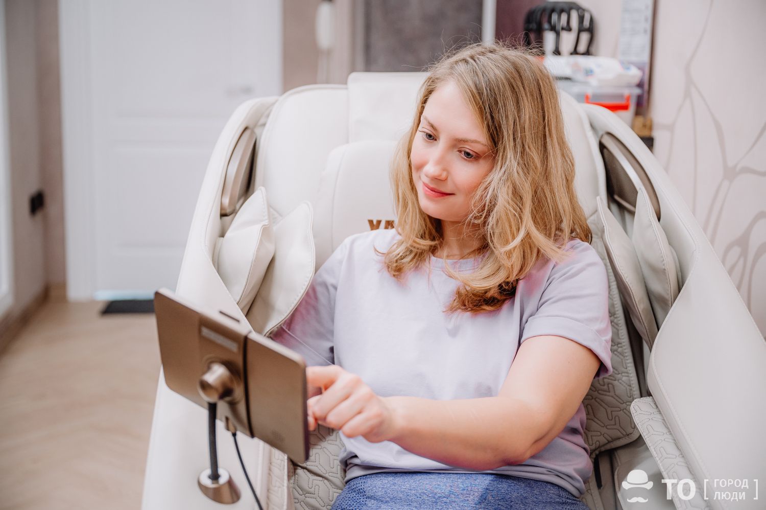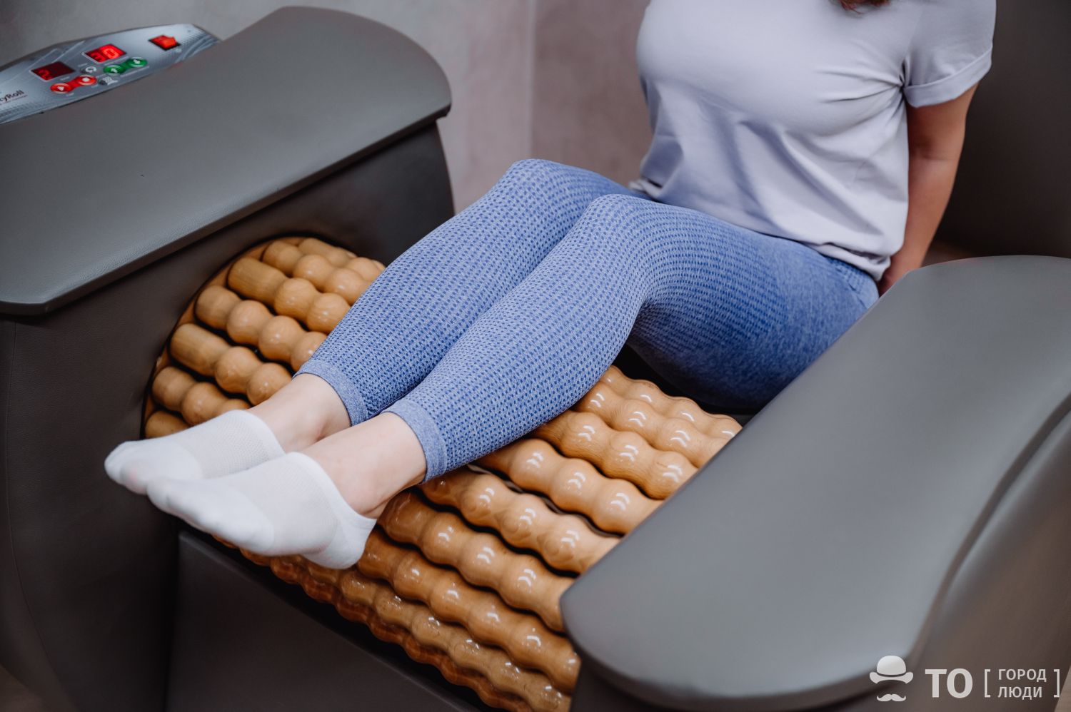 Несмотря на русифицированный интерфейс, разобраться в алгоритмах и возможностях супер-кресла непросто: мы попробовали и оказались вверх ногами. Поэтому воспользовались стационарным телефоном, который размещен тут же, и вызвали администратора. Он подробно рассказал о доступных вариантах и помог выбрать сценарий расслабления с подогревом и мягким покачиванием.
