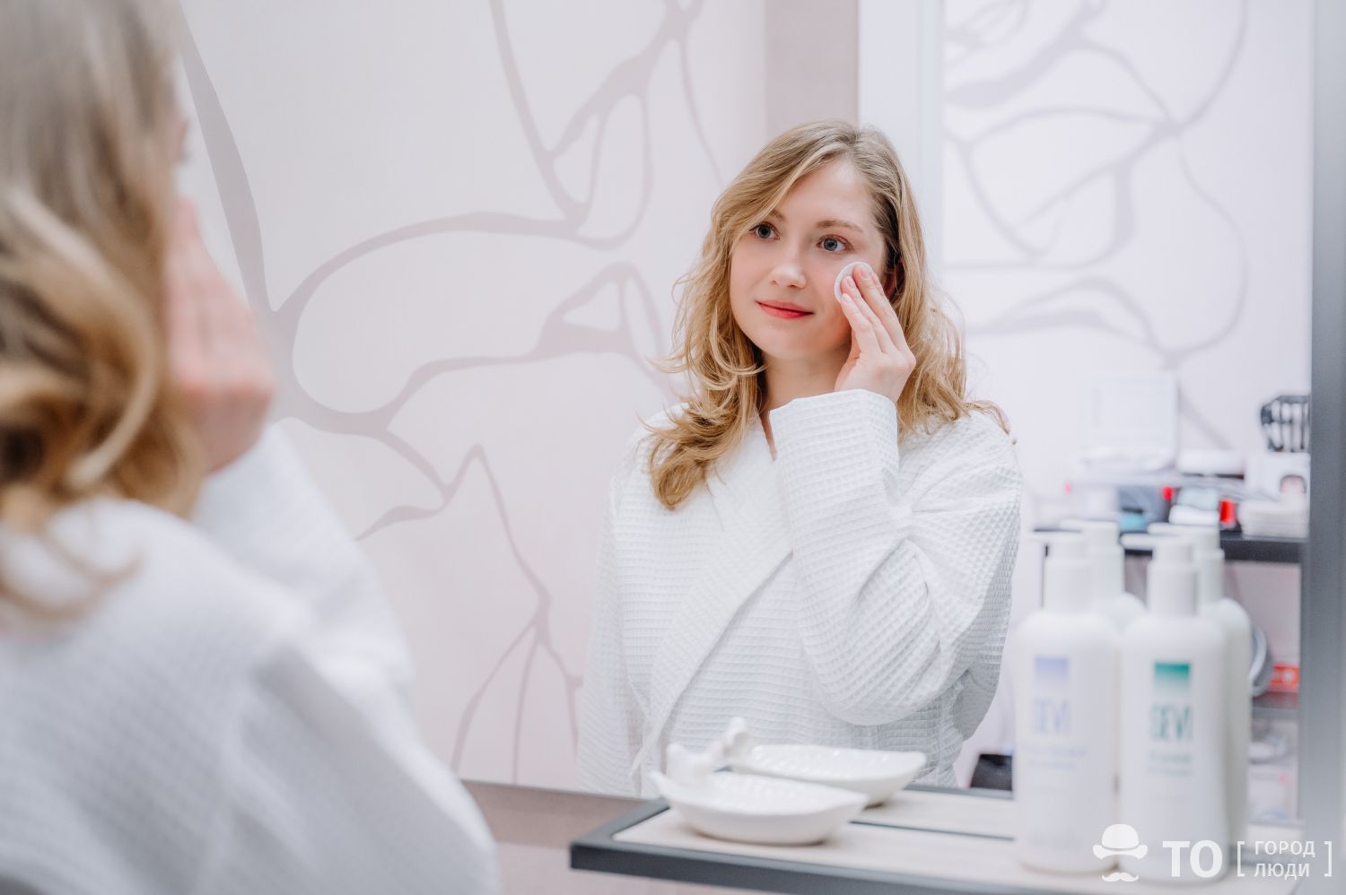 — Кстати, перед тренировкой можно сразу смыть макияж — для этого в ванной есть специальные средства от известного российского бренда уходовой косметики.
