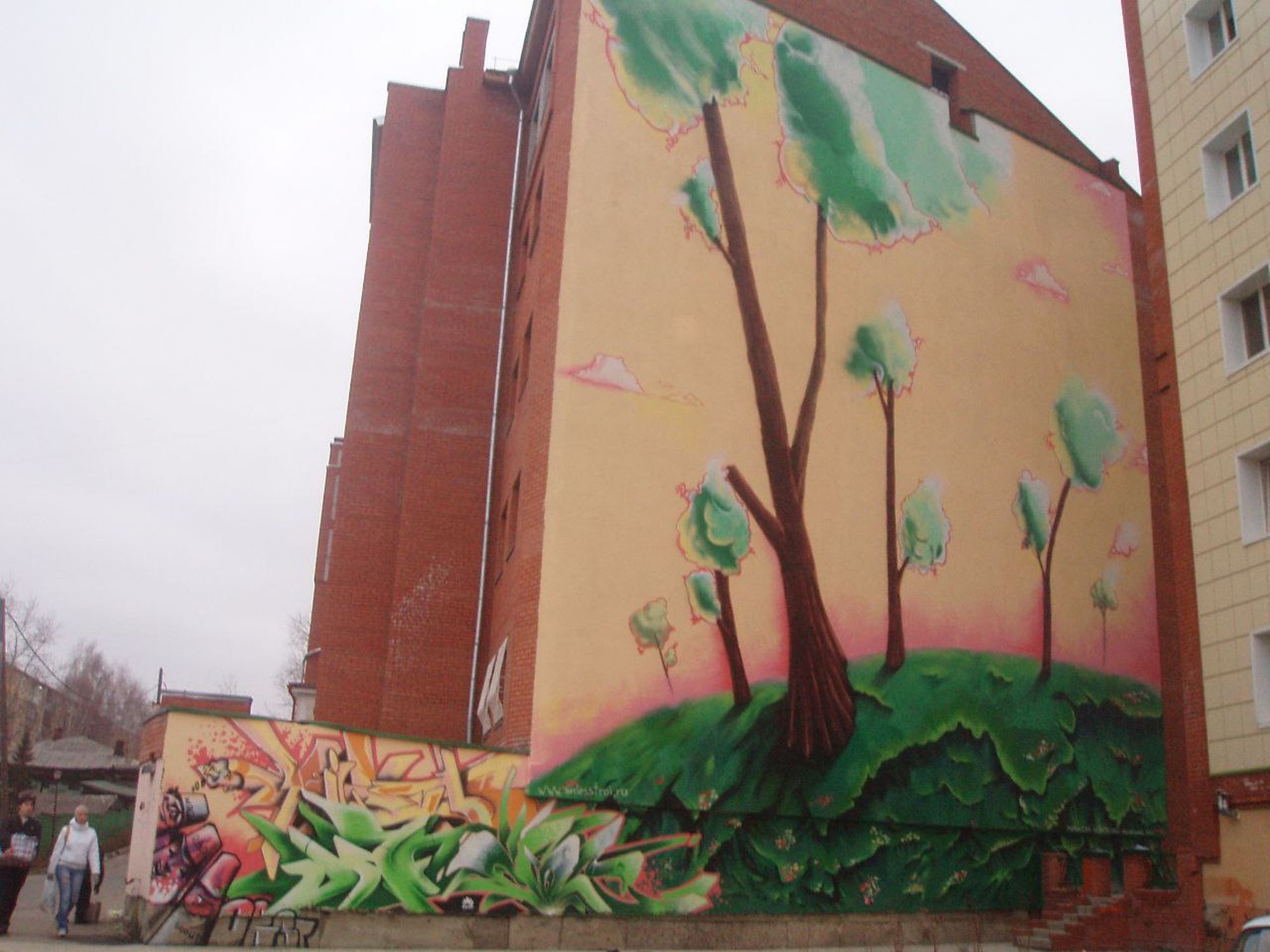 Первый «мурал» появился в Томске в 2008 году, команда ORST расписала фасад по заказу компании «Томлесстрой». «Это был первый фасад, мы заказали автовышку, размечали всё вручную. Это было неожиданно и приятно, что мы уже вышли на такой формат», — вспоминает Олег.