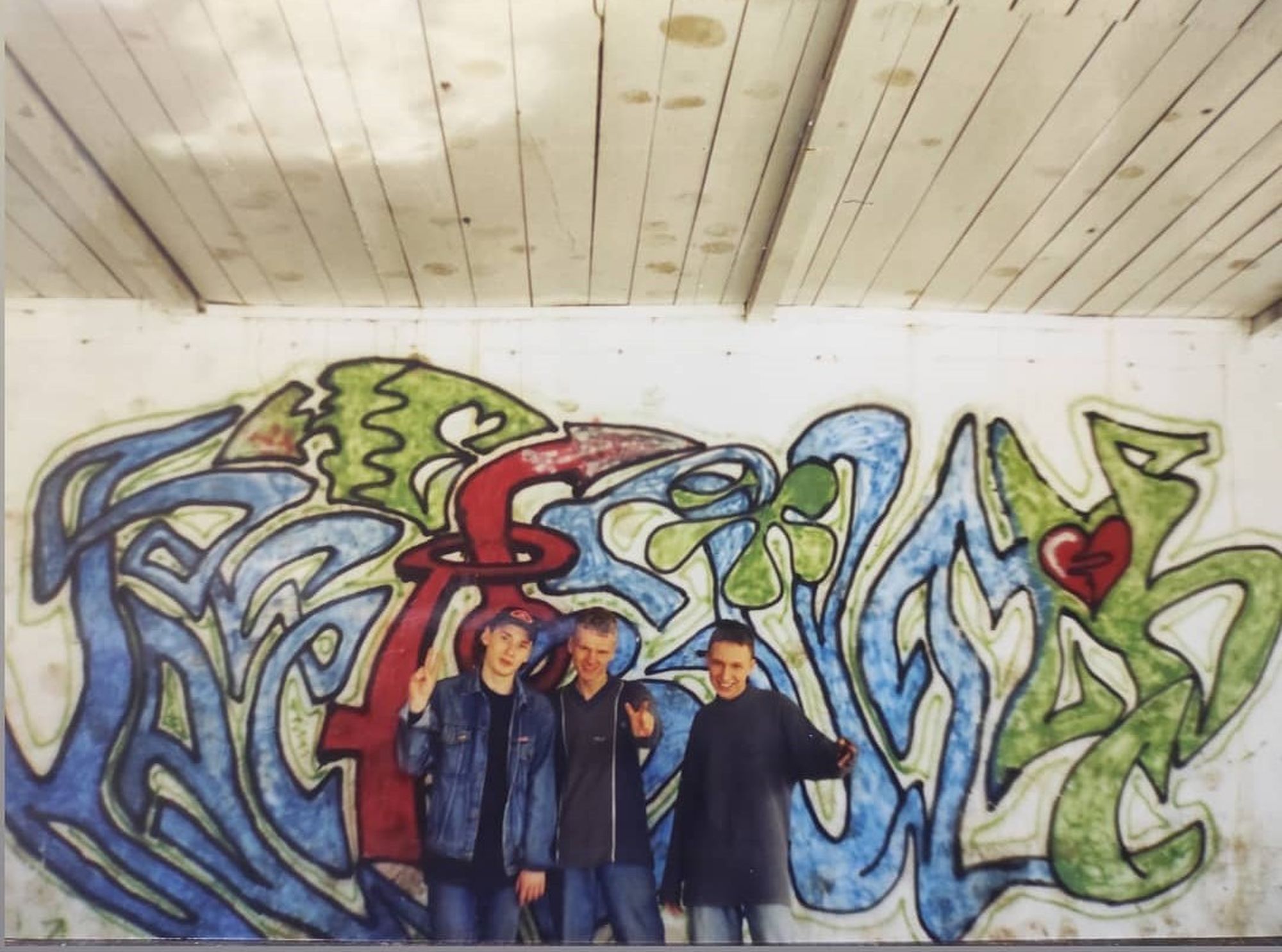 «На моём первом курсе было ещё несколько человек, кто увлекался граффити. Мы собрались в компашку и рисовали на бумаге какие-то эскизы. Иногда на партах: в 90-е университеты были убитые, все изрисованные. Оставляли свои эскизы в разных аудиториях, потом пересекались, видели работы друг друга. Было прикольно», — вспоминает Данила.