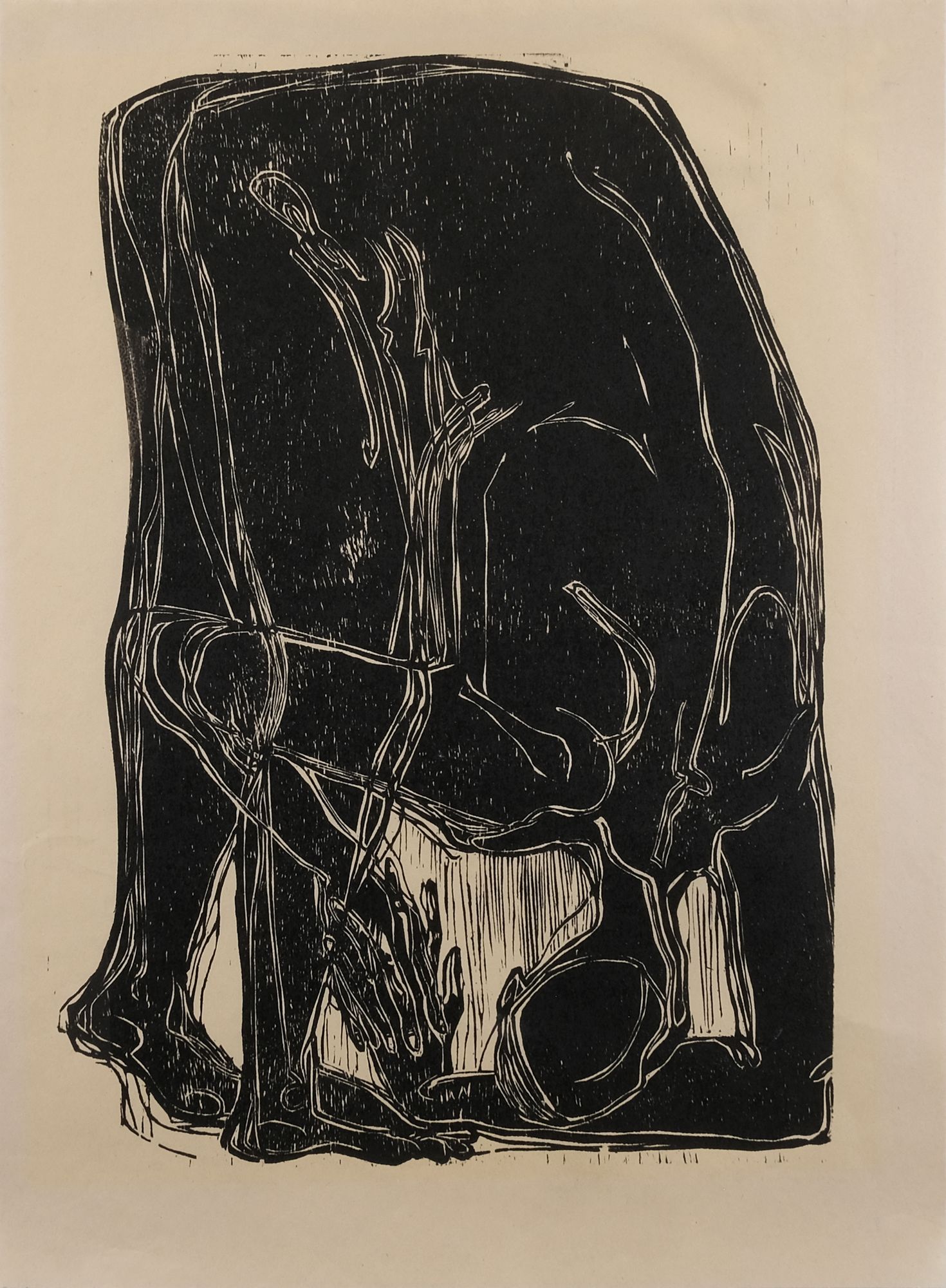 График, изучает художественные возможности таких техник, как линогравюра, гравюра по картону и уникальная графика. Долгое время вместо пресса, который необходим для переноса изображения с формы, пользовался столовой ложкой. На выставке Дмитрий представит серию линогравюр, в которой индустриальные конструкции уподобляются образам отца, матери, братьев и семьи в целом.