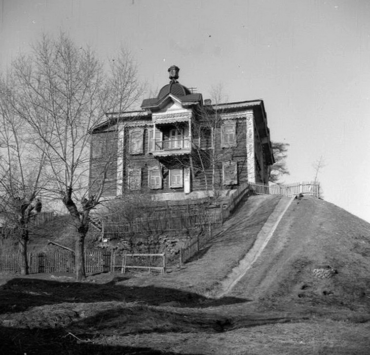 Еще одной особенностью дома с фонарем была своя смотровая площадка с беседкой, а под ней — буквально врезанный в основание склона деревянный флигель. К сожалению, в советское время обе эти пристройки были разобраны, а пустующий овраг быстро зарос деревьями и кустарниками, которые скрыли от глаз прохожих и основное здание.