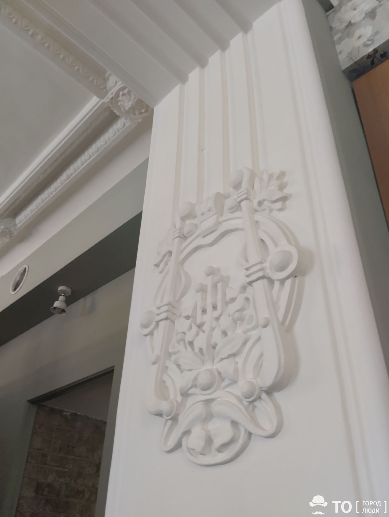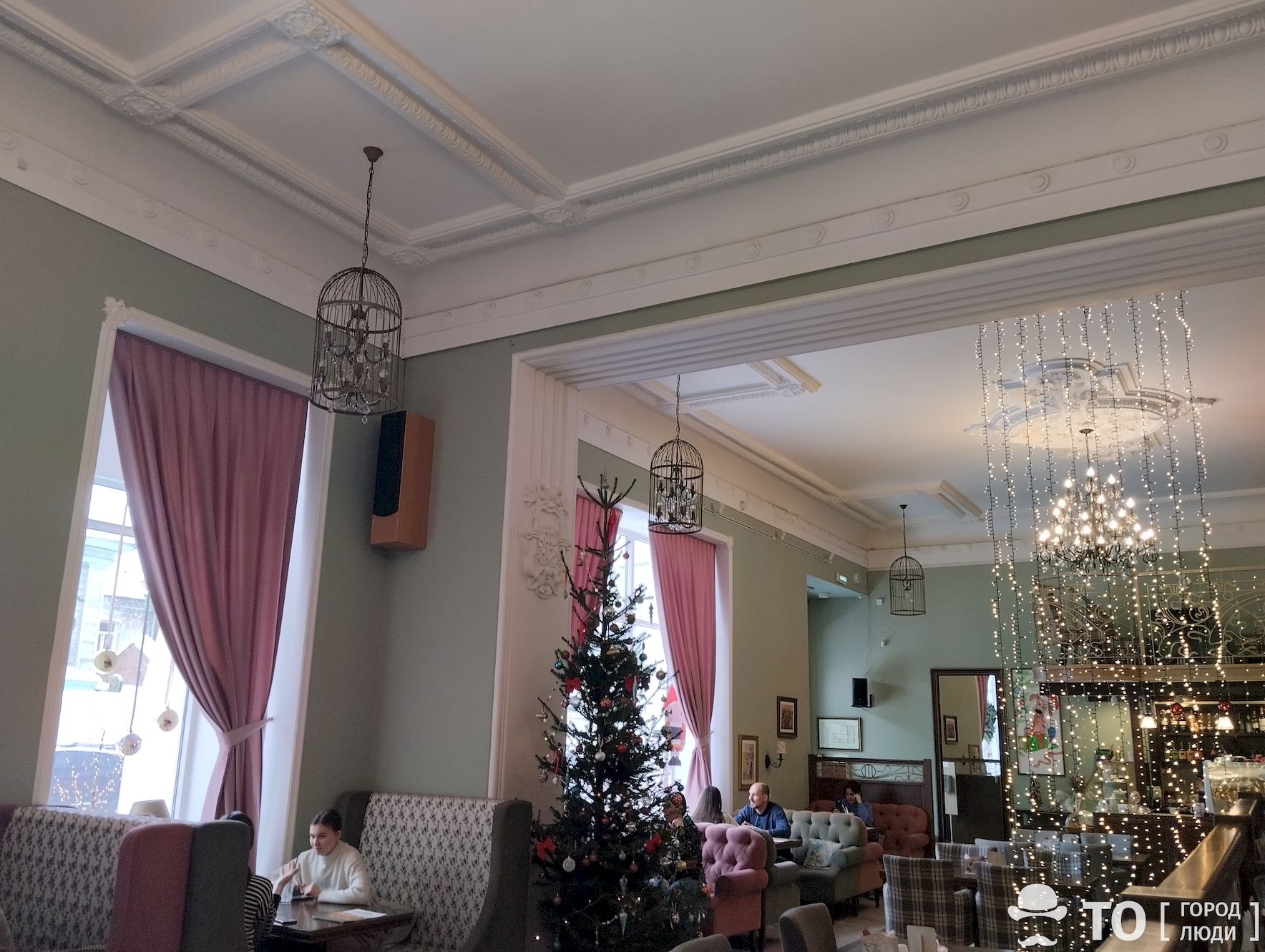 Сейчас на первом этаже расположено кафе «Пряный тимьян» с отдельным входом. И если в Дворец бракосочетания не так-то просто попасть, чтобы осмотреть сохранившиеся интерьеры, то в «Пряном тимьяне» это можно сделать, еще и перекусив с видом на главную улицу города.