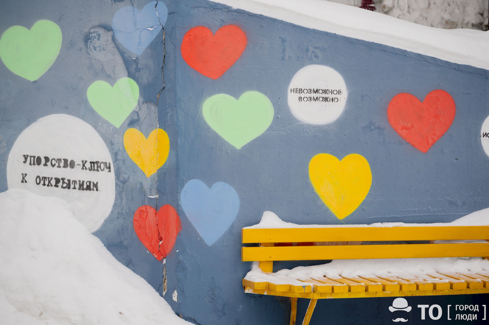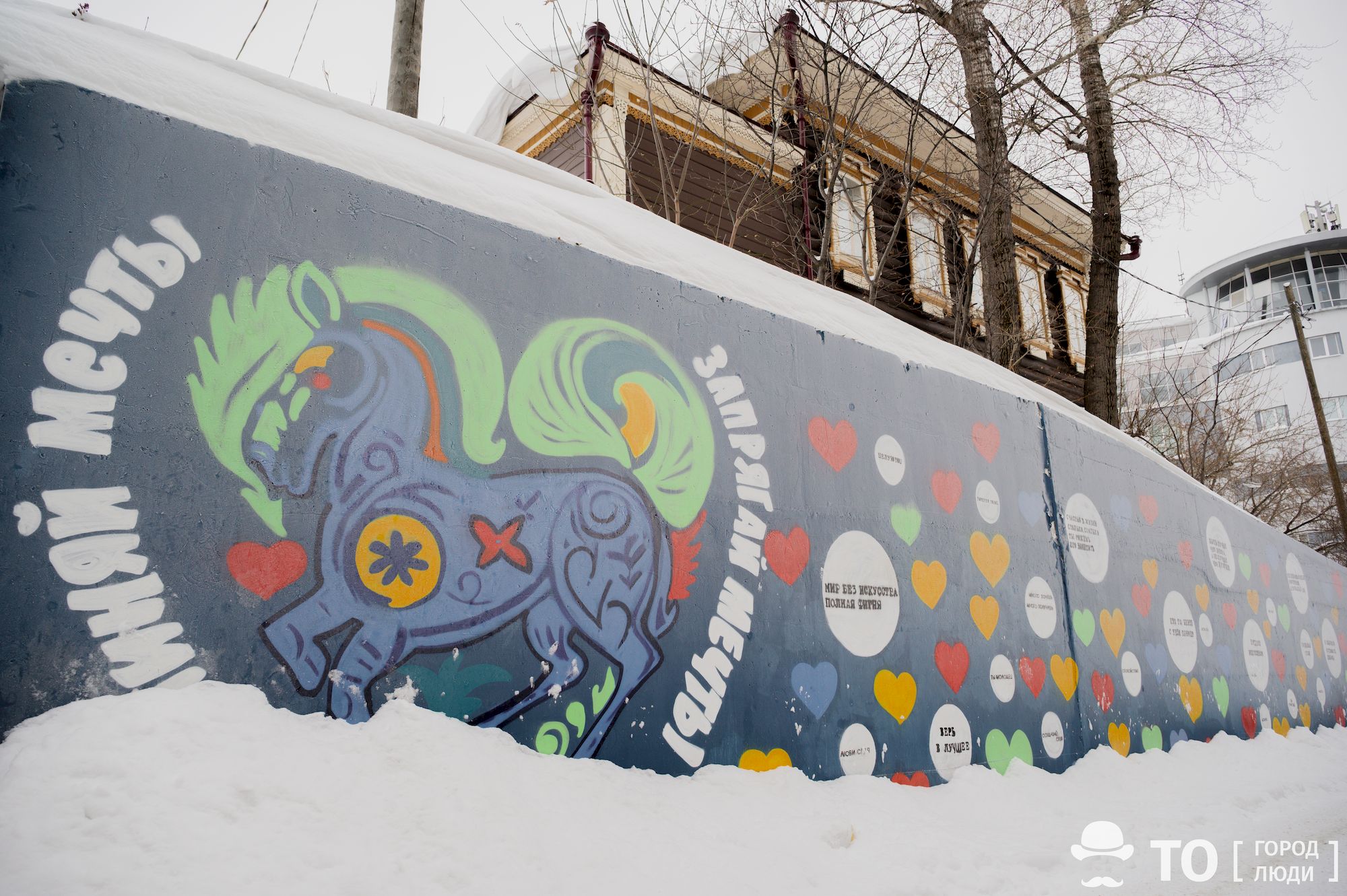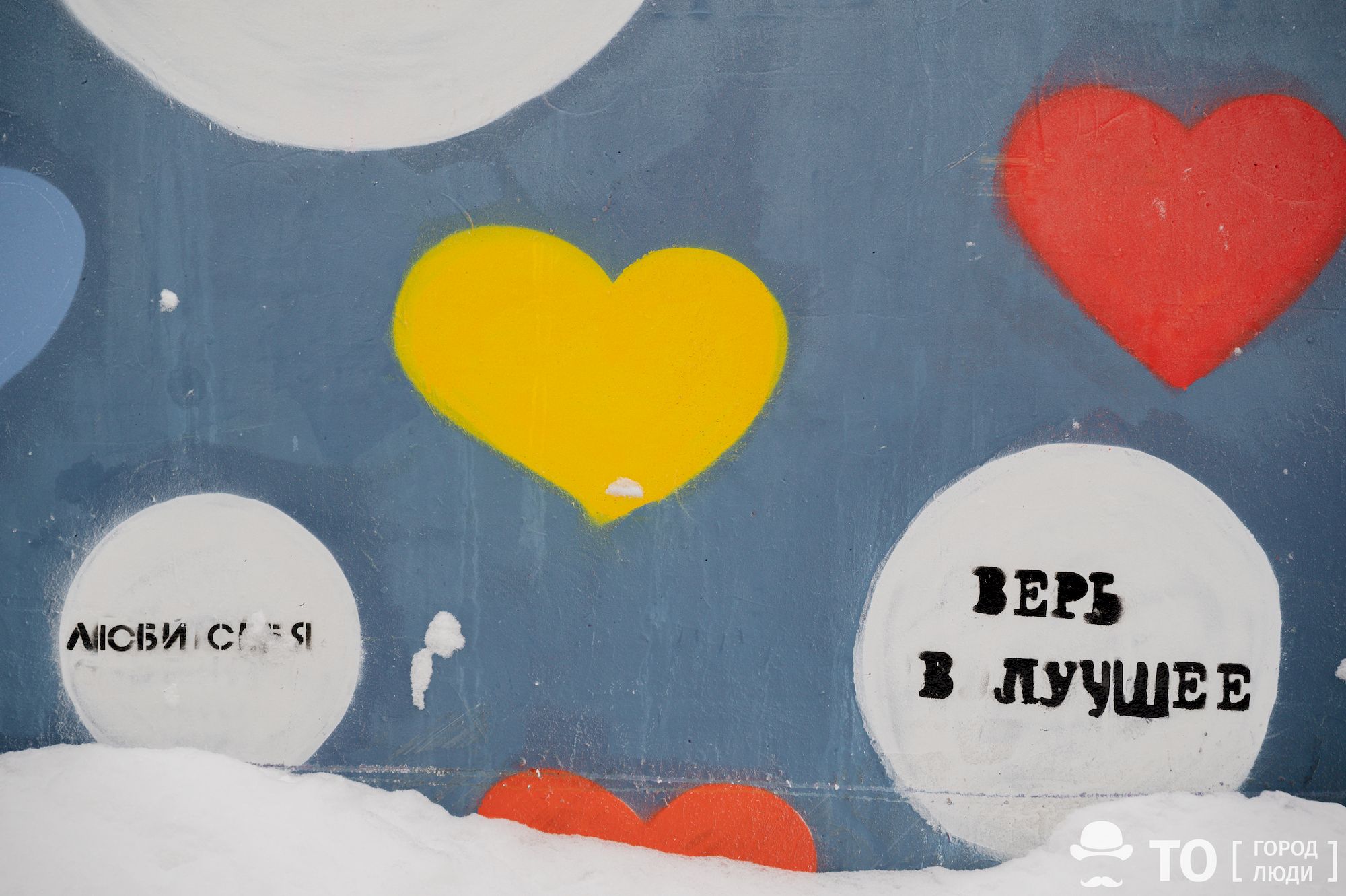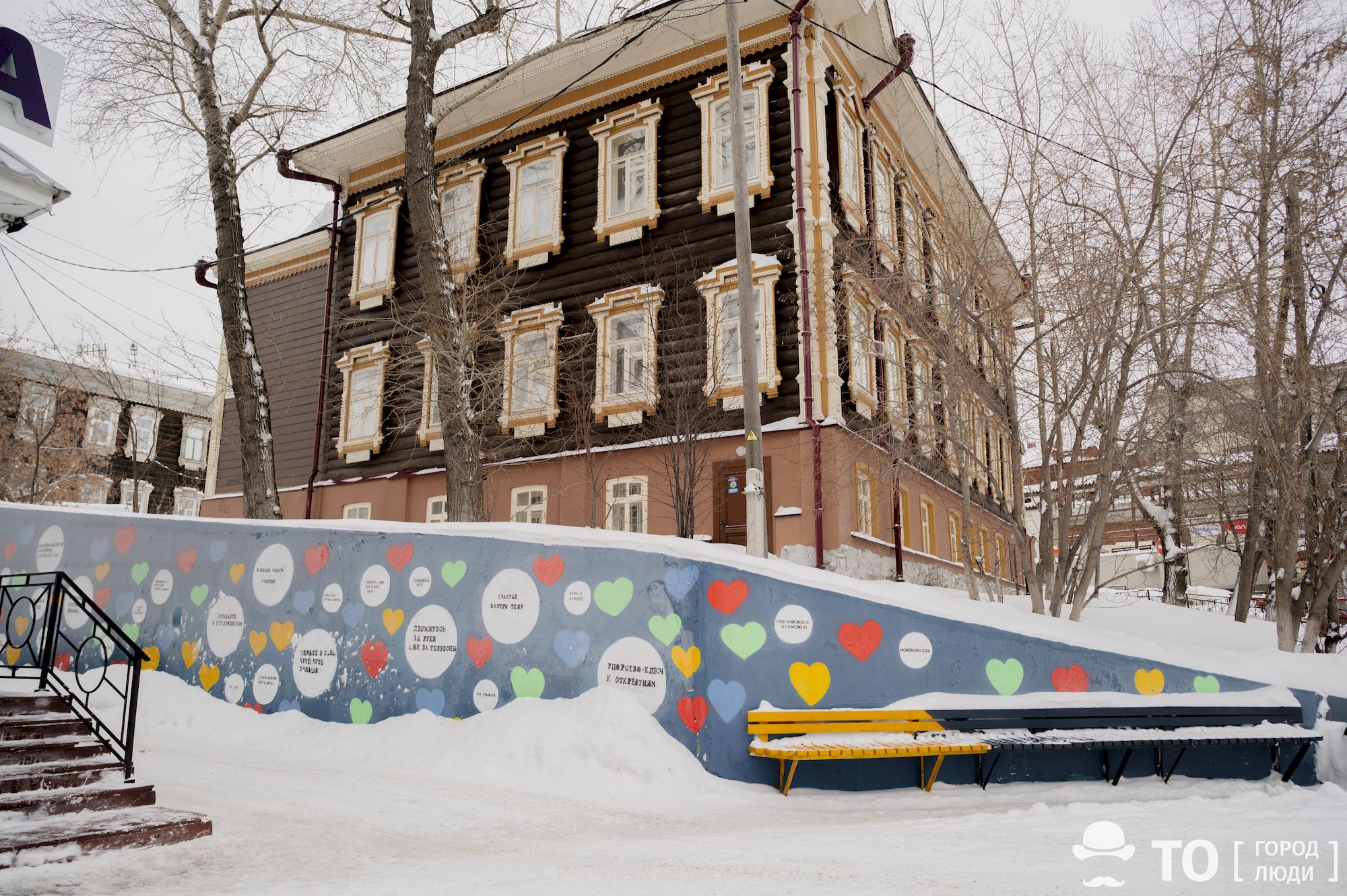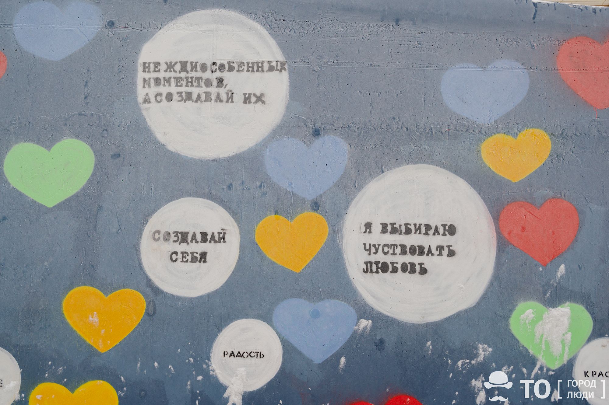Стену на Трифонова в Томске украсили сердечками и мотивационными фразами