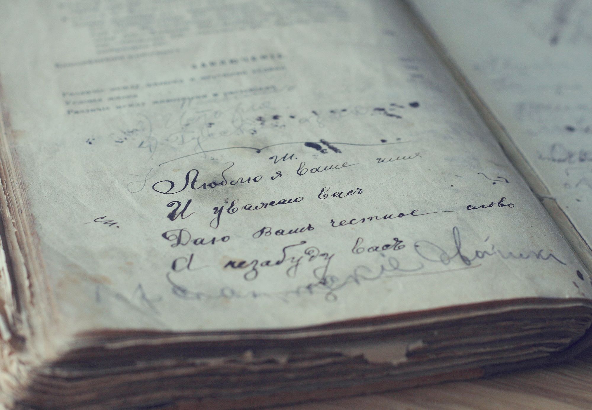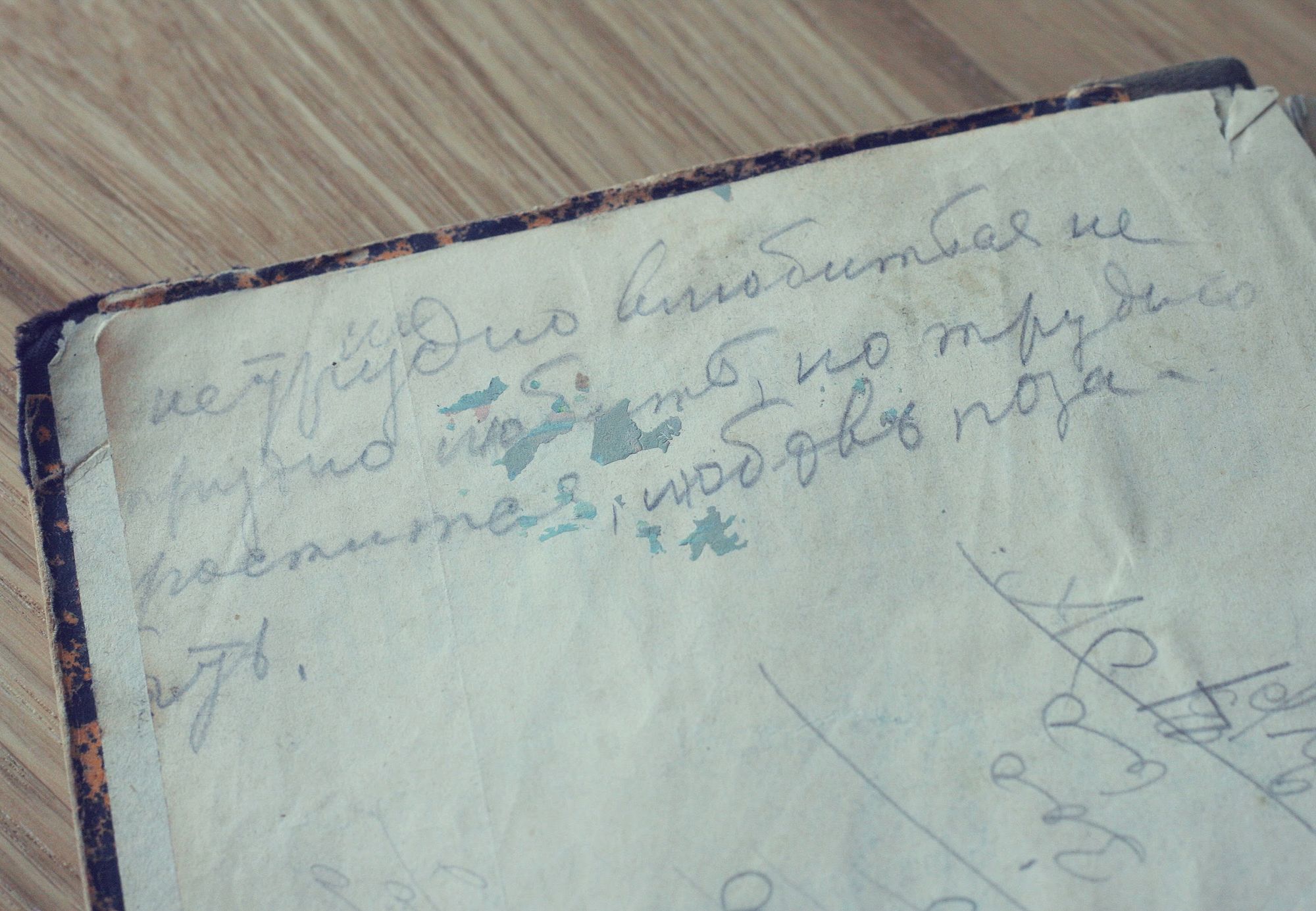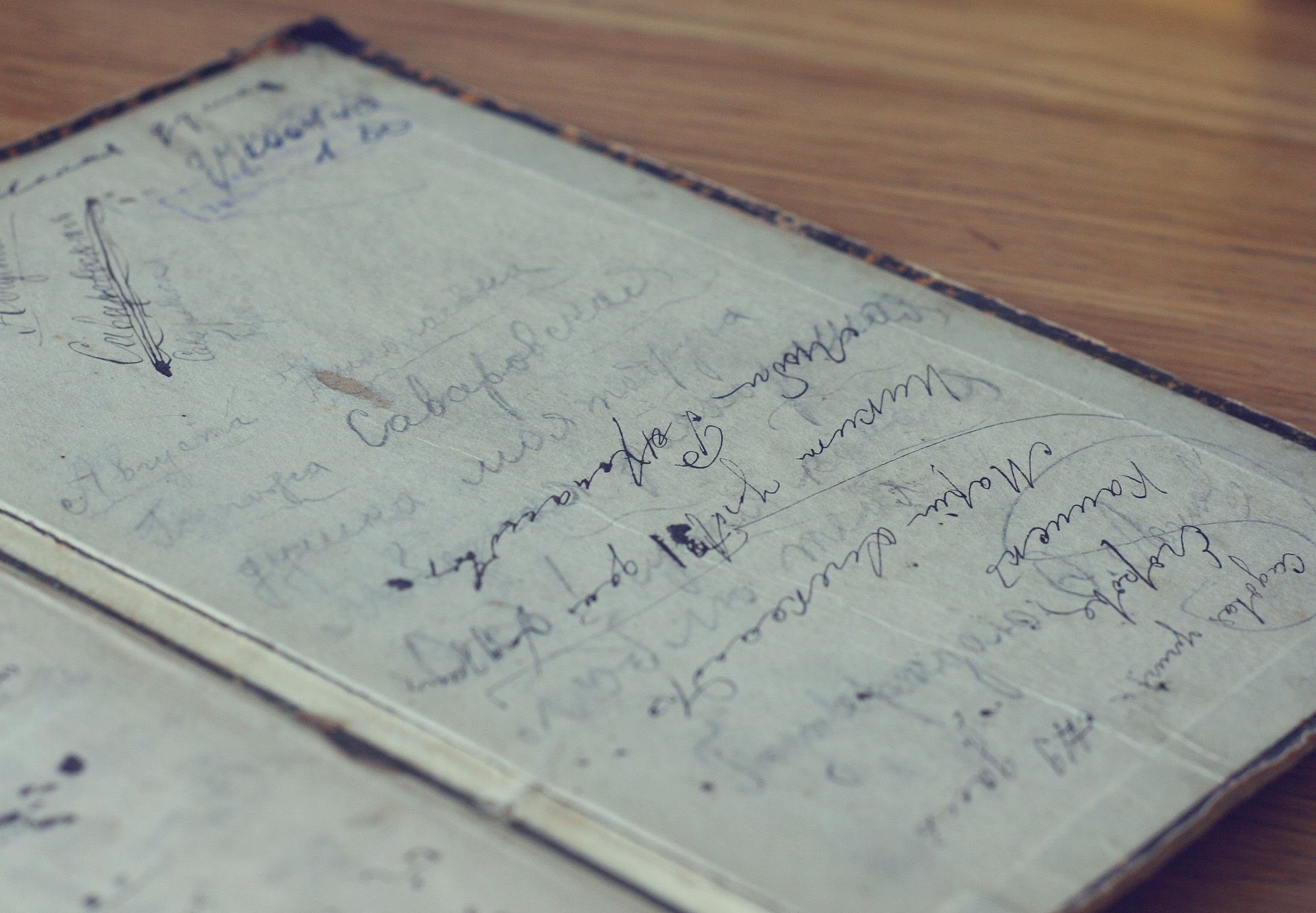 Для самой Ирины, увлекающейся фотографией, книга поначалу была лишь «фактурным реквизитом» для съемок. Но в какой-то момент ее взгляд остановился на одной из первых страниц. Карандашом и детским почерком там был написан наивный стих: «Нетрудно влюбиться, нетрудно любить, но трудно проститься, любовь позабыть». После этого Ирина вплотную занялась разбором записей на книжных полях.