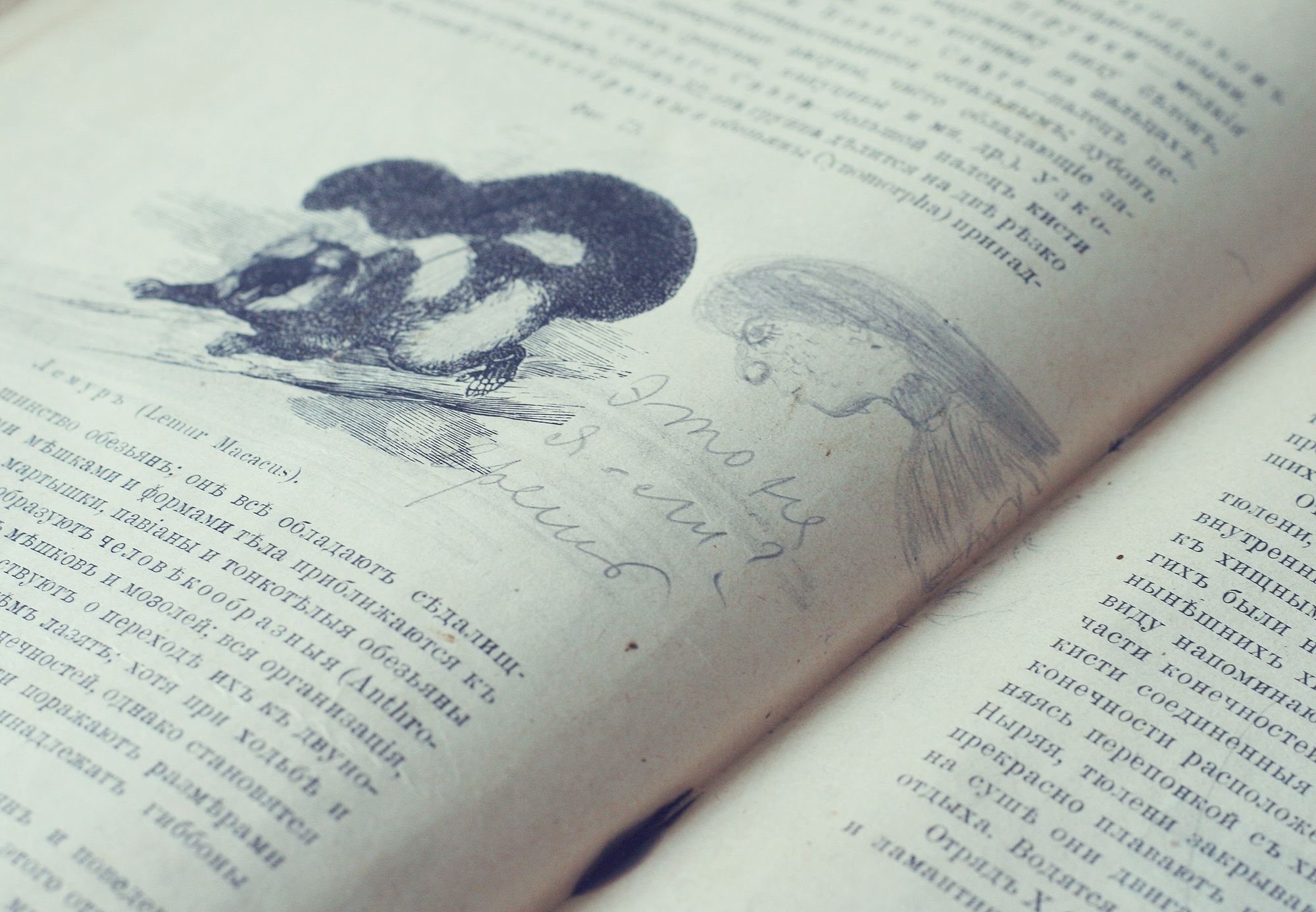 Ирина отмечает — в книге много рисунков и записок на полях; что-то написано простым карандашом, а что-то чернилами, но разобрать, к сожалению, удалось не всё. Хотя из того, что получилось понять, сложился образ «милой школьницы».