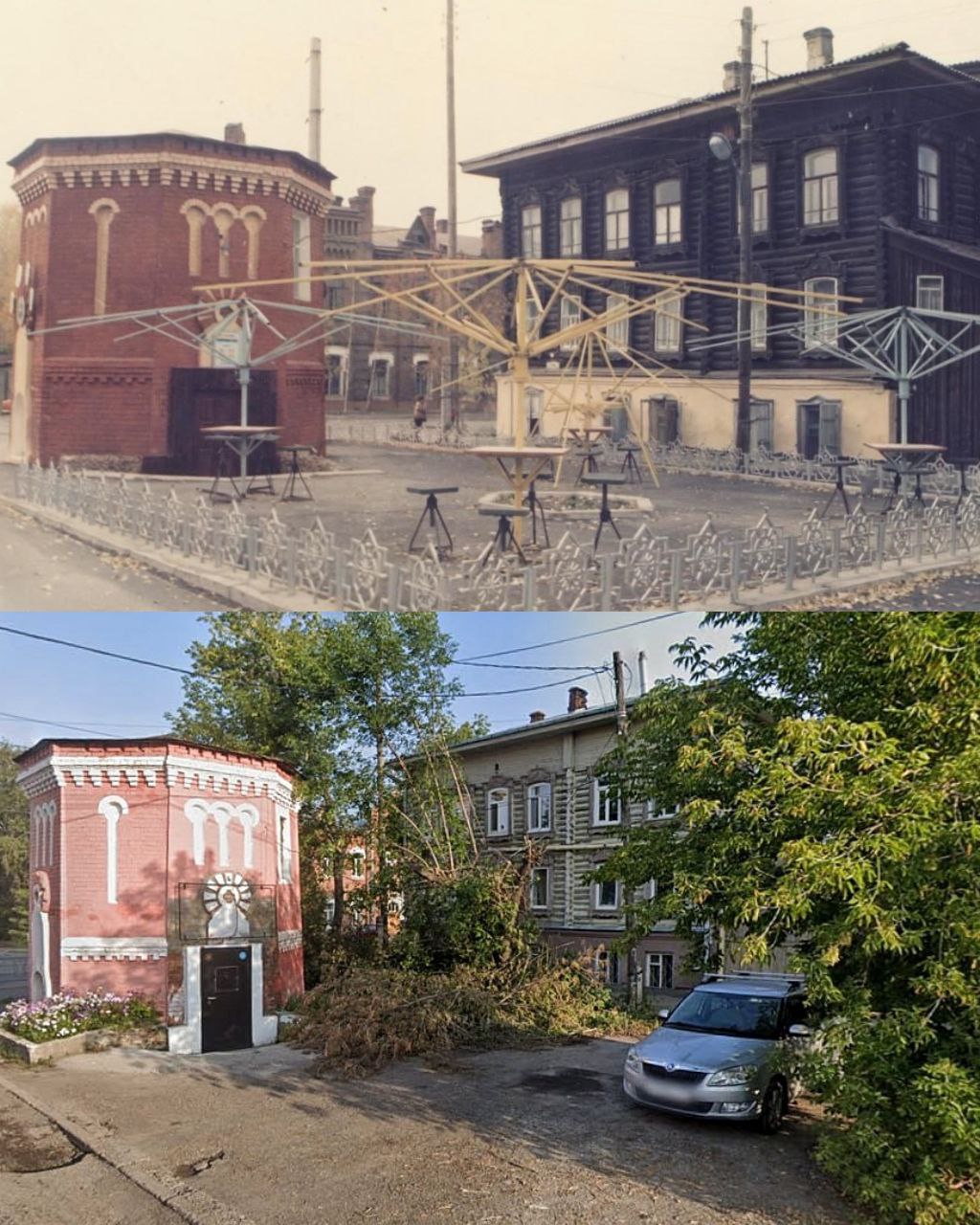 В 1986 году водоразборные будки в разных частях города стали превращаться в кафе-мороженое. Так, одну из таких «башенок» в пер. Сакко, Томский завод резиновой обуви переоборудовал всего за месяц. Из отходов литья дюраля была сделана ограда, о которой сейчас напоминает безымянный периметр возле башни.