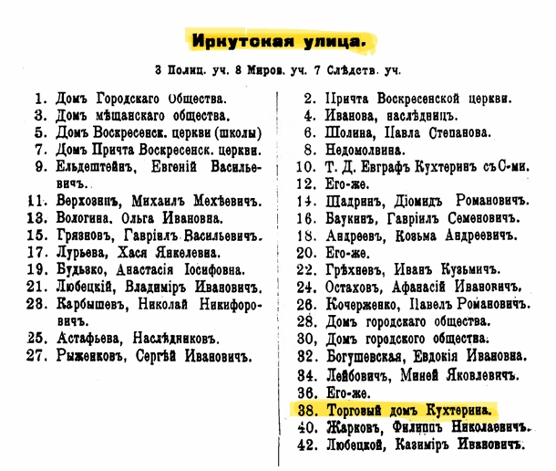 Новая владелица планировала построить навес и перенести хозяйственные постройки на другое место, поэтому в 1889 году обратилась в городскую управу с соответствующей просьбой. Усадьба к тому времени состояла из деревянного одноэтажного дома и такого же флигеля. Но, как пишет Петрушин, вероятнее всего, крестьянка не смогла погасить долг за недвижимость. Так в 1908 году имущество перешло Торговому дому «Евграф Кухтерин и сыновья».