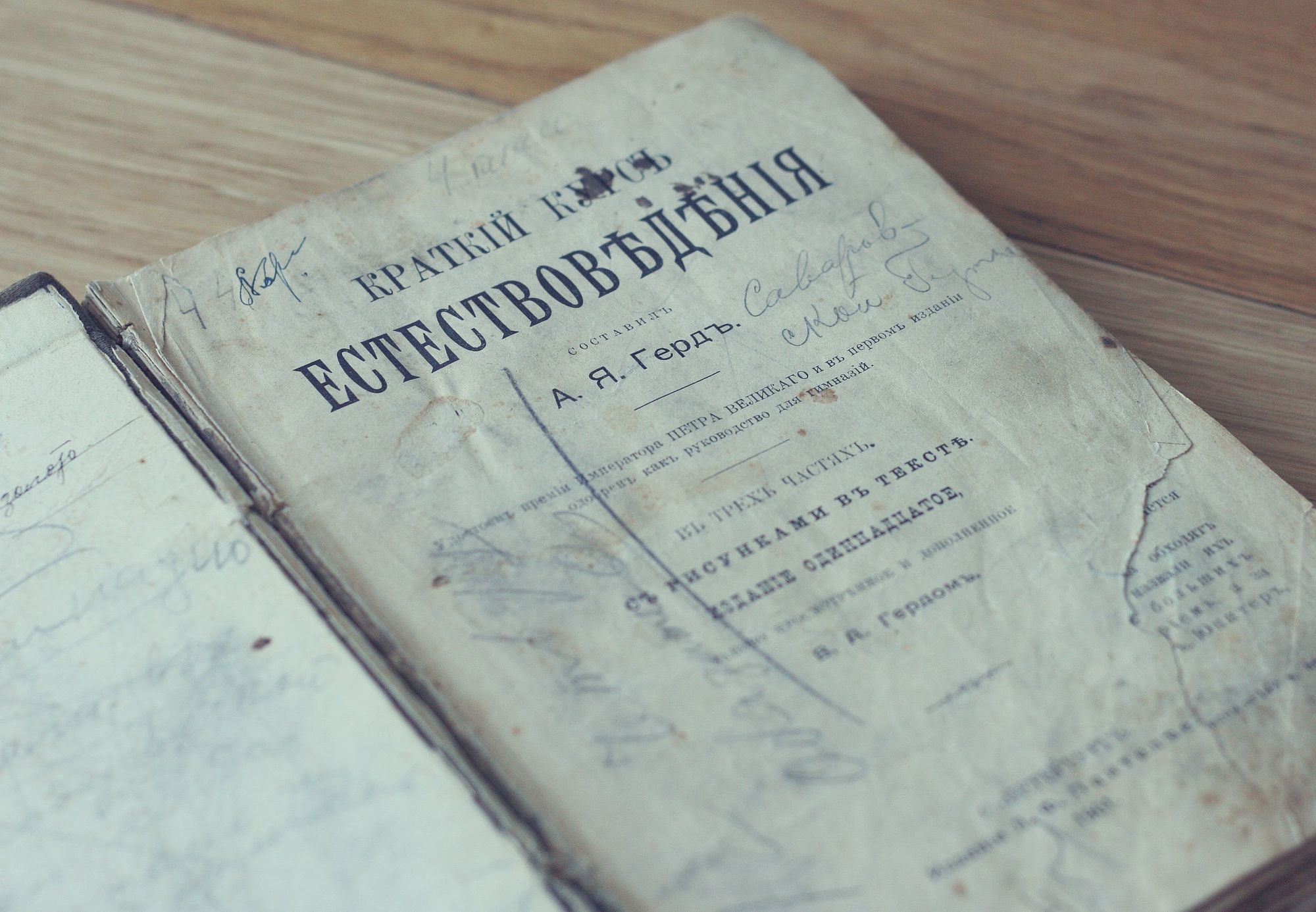 Книга оказалась в нашем доме от отца моего мужа — библиотека у него была очень хорошая. Скорее всего, Александр Сергеевич приобрел книгу в каком-нибудь магазине типа томского «Букиниста». Выбор именно этой книги неудивителен: свёкр в молодые годы довольно серьезно увлекался спелеологией, посещал пещеры сибирского региона. Возможно, старинный учебник по естествознанию с иллюстрациями привлек его не только датой выпуска, но и вызвал чисто научный интерес. А мне книга сначала очень приглянулась внешне. Я увлекаюсь фотографией, и такой колоритный «реквизит», конечно же, не мог пройти мимо. Фотографировать книжку было чистое удовольствие — мягкий потертый переплёт, желтые страницы с запахом времени, поля исписаны чернилами… В какой-то момент я наткнулась на страницу с записями на полях: это был стих, детский, наивный, но я была настолько поражена тем, что вообще сумела что-то прочесть! Я-то думала, от времени там уже не разберёшь ни буквы. Начала листать дальше и... зависла на целый день. Притащила лампу, нашла у ребёнка лупу, и провалилась на неделю! Листала, читала, изучала. Я как будто проживала жизнь маленькой хозяйки книги Гути Саваровской, гимназистки 4 класса из города Томска, жившей в 1905 году, — рассказывает Ирина. — В книге есть записки на полях, рисунки, что-то написано простым карандашом, что-то чернилами, не всё можно разобрать, но даже из того, что осталось, сложился образ милой школьницы. У неё была подруга Лида, она любила стихи, гуляла по томской пристани и порой филонила на уроках естествознания. Есть записи и рисунки — и по предмету тоже — какие-то замечания, уточнения. Чувства совершенно непередаваемые! Лично у меня такие вещицы всегда вызывают внутренний трепет и необъяснимую тихую радость. Как будто заглянула сквозь время, на сто с лишним лет назад. И то, что я там увидела, мне очень понравилось.
